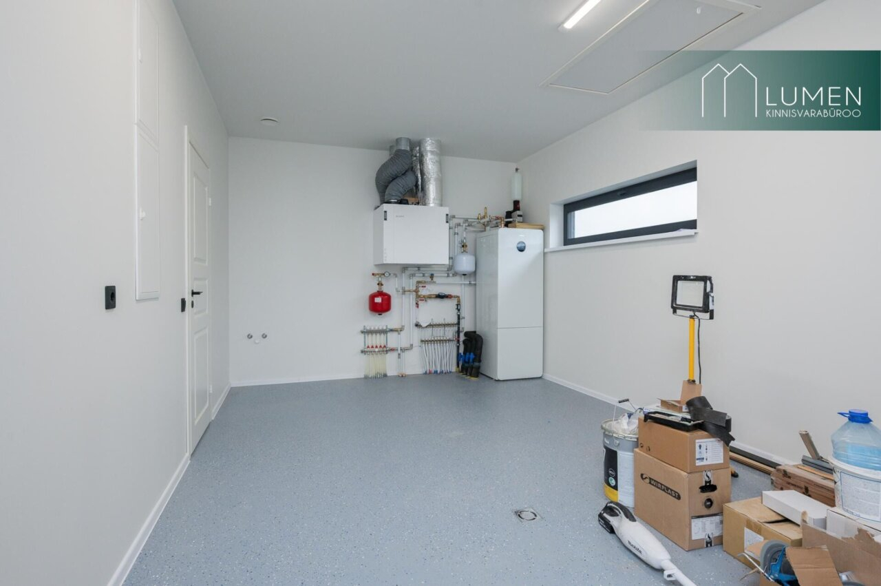 Köetav garaaž on puldiga avatav ning seal on olemas ka valmidus valamu paigaldamiseks. Ümber maja on paigaldatud hämaraanduriga seinapealsed valgustid ning olemas on välipistikud ja veevõtukraan.
