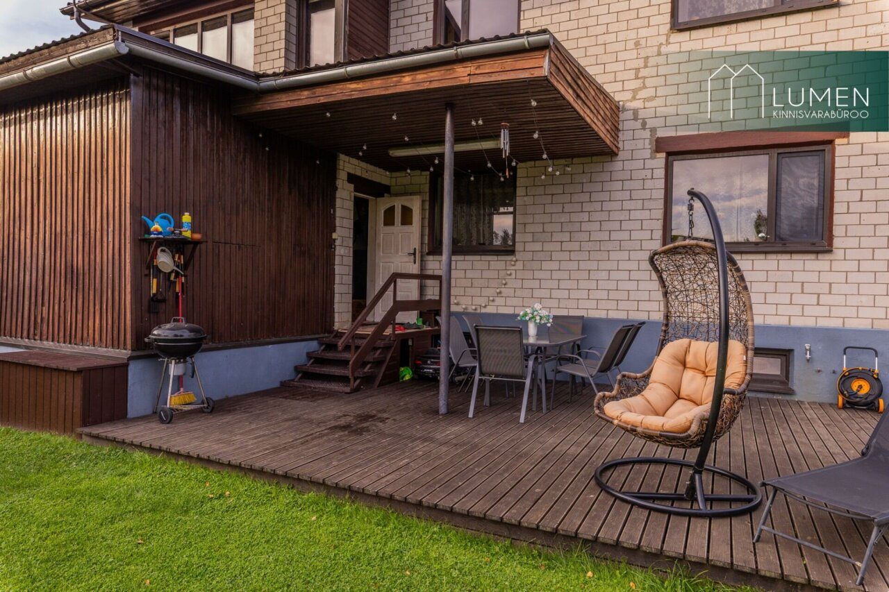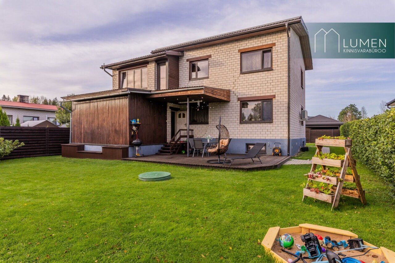 Müüdava kinnistu suuruseks on 579 m². Hoov on ümbritsetud korraliku puitaiaga, mis loob piisava privaatsuse. Maja ees on maas kiviparkett ning ülejäänud hoovis on hästi hooldatud muru. Lisaks on krundi ühes servas kaunis hekk ning maja taga õunapuu. Maja ees, aia taga, on tekitatud killustikuga parkimisplats.