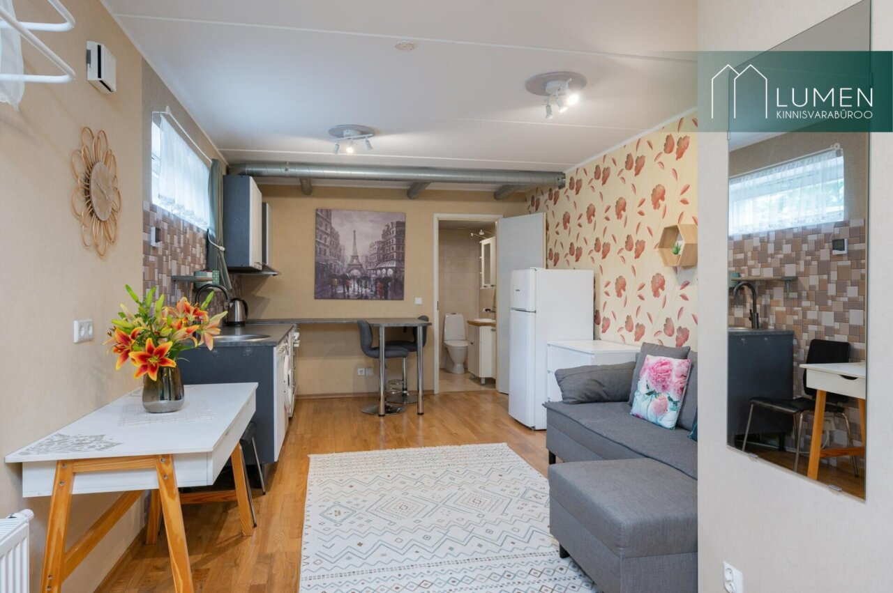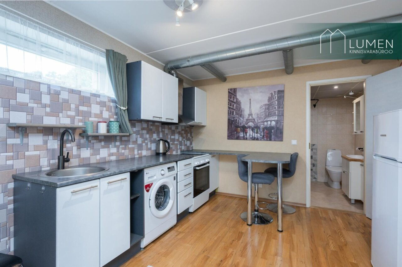 Korter paikneb soklikorrusel vaikses ja hooldatud kortermajas ja on varustatud oma sauna ja pesemisvõimalustega – suurepärane valik inimesele, kes hindab privaatsust ja erilahendusi!