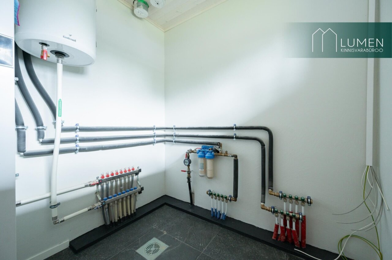 Küttelahenduseks on õhk-vesi soojuspump ning kogu majas on vesipõrandaküte, mis tagab ühtlase ja energiasäästliku soojuse. Soojustagastusega sundventilatsioon loob meeldiva sisekliima aastaringselt. Vesi ja kanalisatsioon on ühendatud tsentraalsesse võrku.