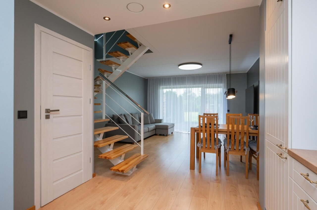 I korruse esikust otse jääb avar köök-elutuba. Paigaldatud on kvaliteetne köögimööbel koos integreeritud tehnikaga. I korrusel asub samuti ka eraldi wc. Elutoast viib uks suurele terrassile, kus saab nautida päeva ja õhtupäikest.