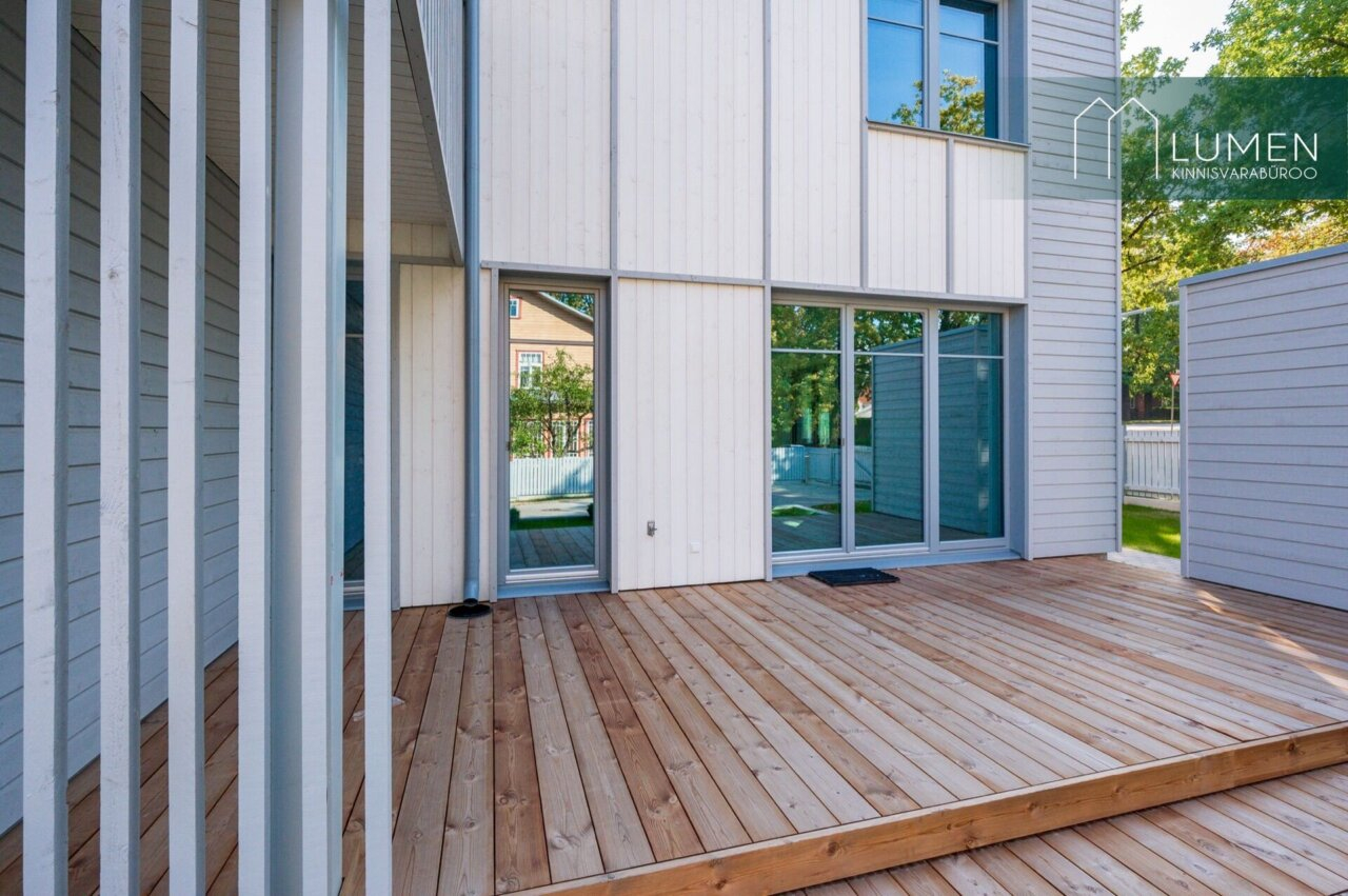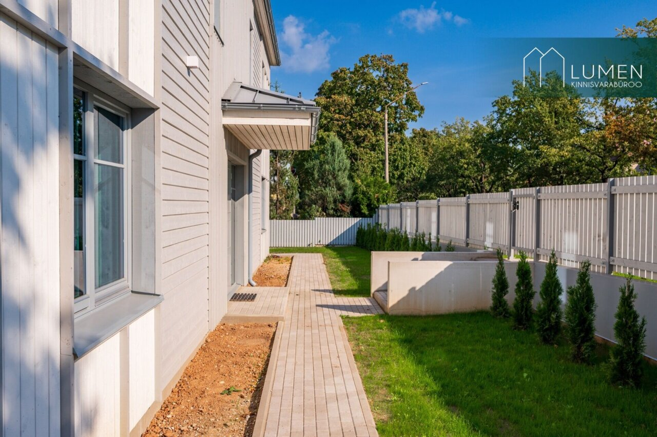 Kivimaja puitlaudisega. Maja on A-energiamärgisega. Majas on kaks korterit, korterid läbi kahe korruse. Esimesel korrusel suur terrass 21 m², teisel korrusel peamagamistoas suur rõdu 5,5 m².