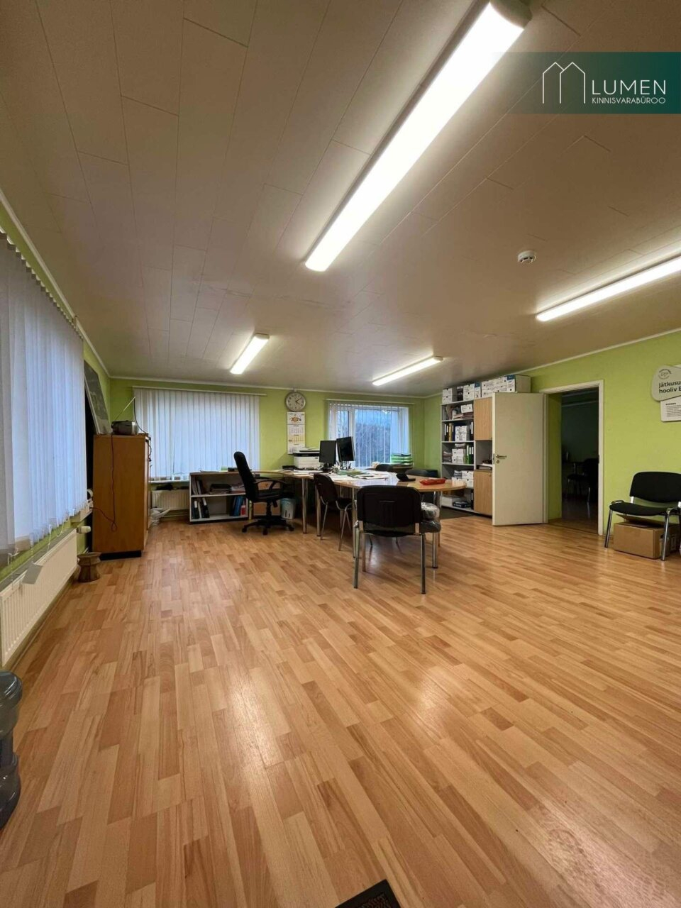 Esimesel korrusel asuvad töötajate puhkeruum, riietumisruum, väiksem kööginurk ning wc ja vannituba ning ka katlaruum ja 2 suurt laoruumi tõstukustega. Majas teisel korrusel asub suurem kontoriruum, puhkeruum ning kööginurk. Sisse jääb soovi korral kogu kontorimööbel.