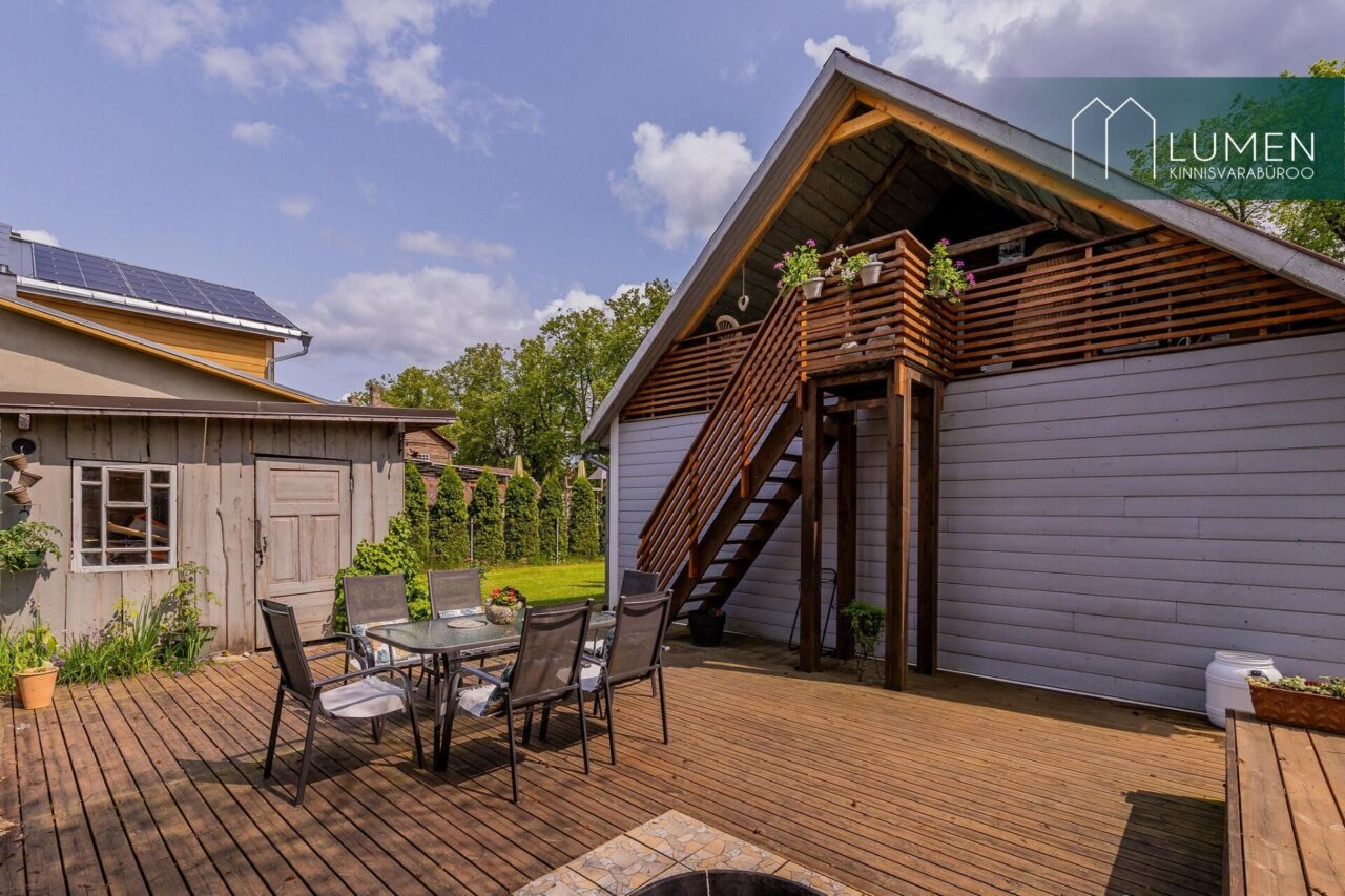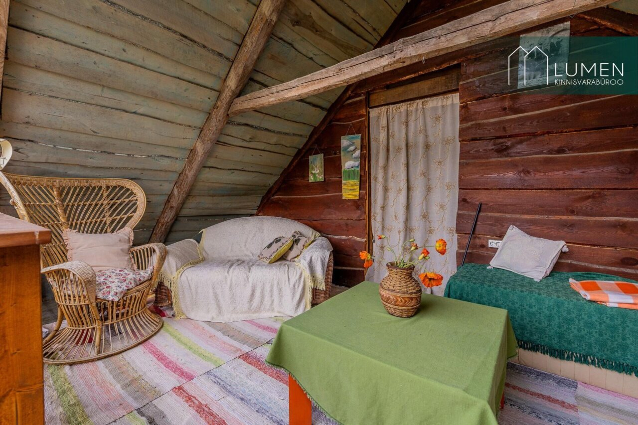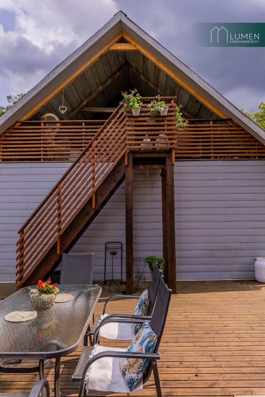 Terrassilt viib trepp elumajja ülesse korrusele suvetuppa, kus on suvise vihma ajal mõnus raamatut lugeda või niisama oma mõtteid mõlgutada. Suvetoas on olemas elekter.