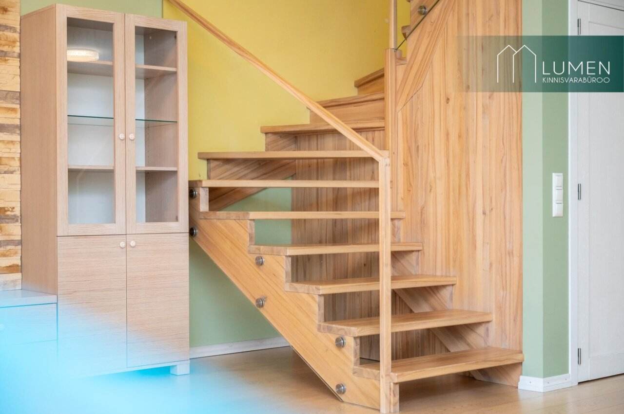 Teisele korrusele viib trepihall, mille trepp on saarepuidust.