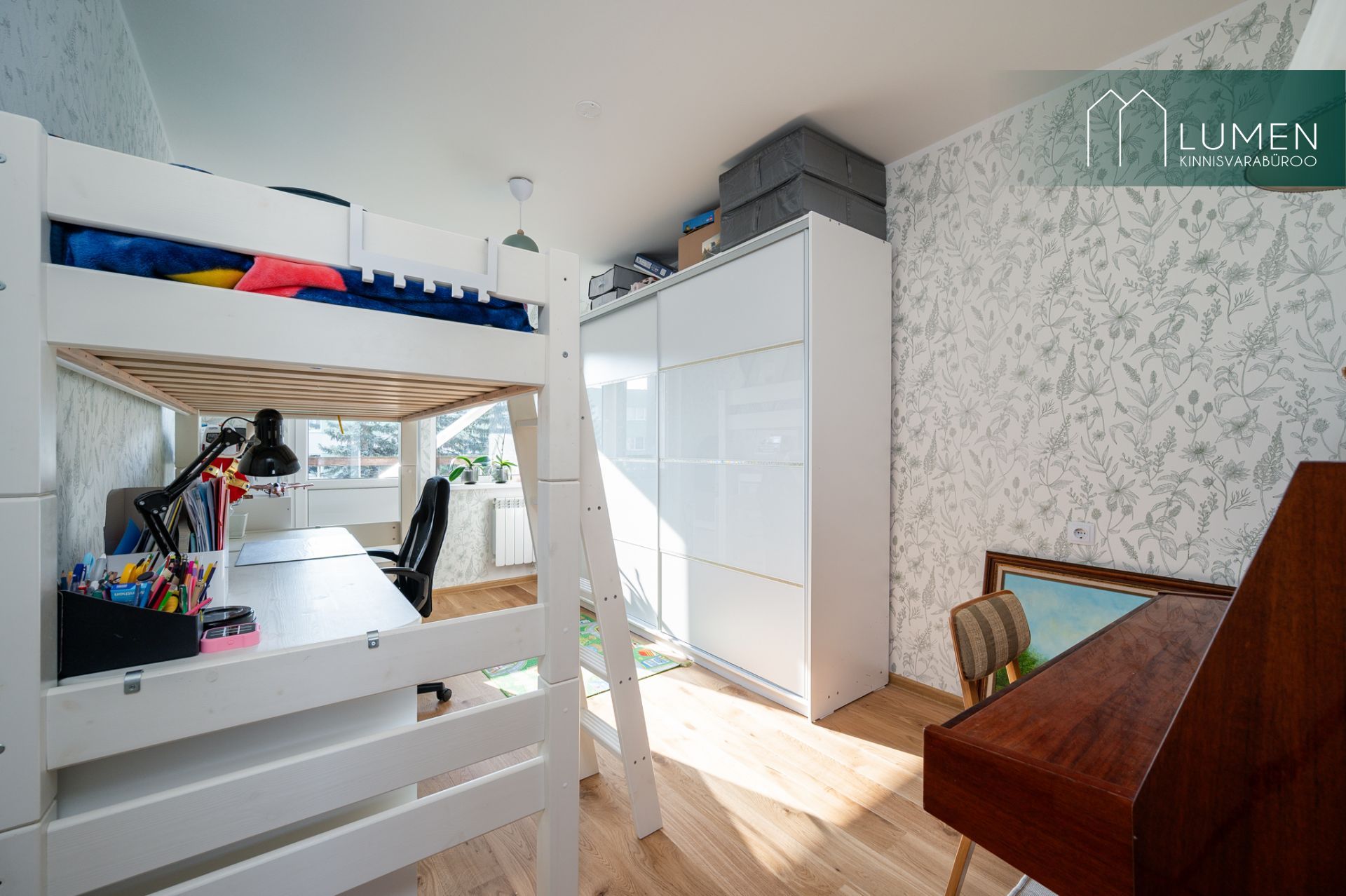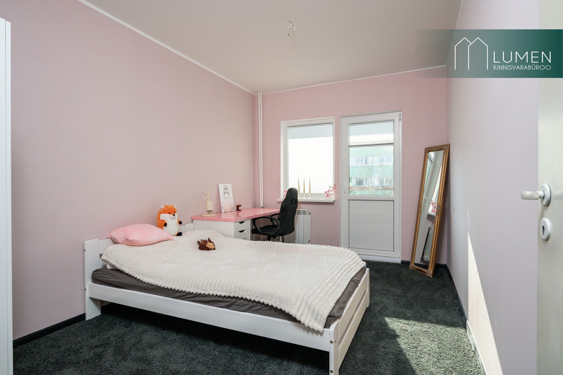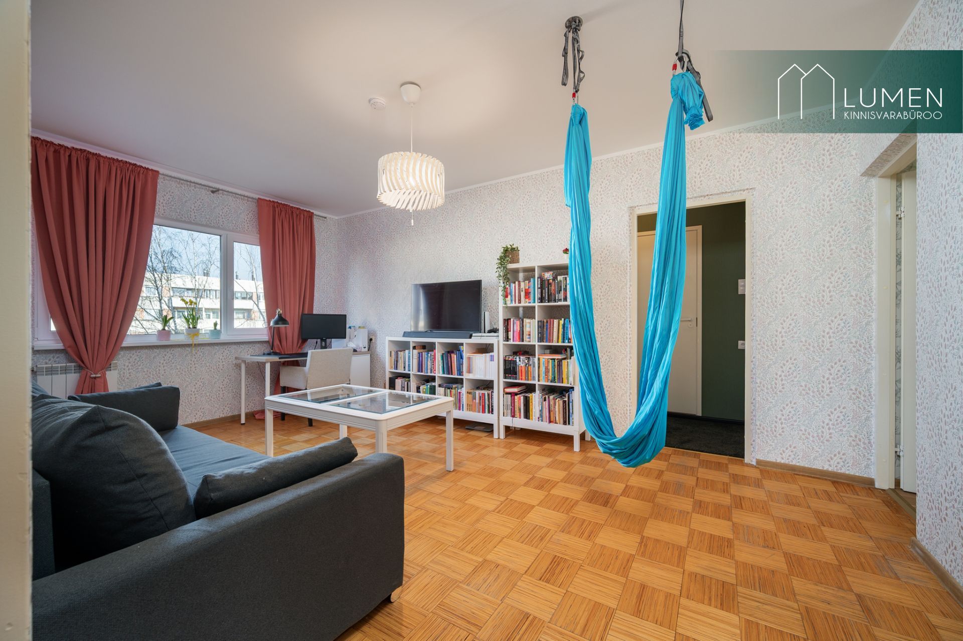 Väga hea asukoht, maja lähedal asub mitu bussipeatust, kiire ühendus kesklinnaga. Sobib hästi lastega peredele (ümbruses on mitmed koolid ja lasteaiad). Maja ees on parkla, kohti on piisavalt kõikidele. Maja taga on haljasala, kahe magamistoa rõdult avaneb mõnus vaade rohelusse.