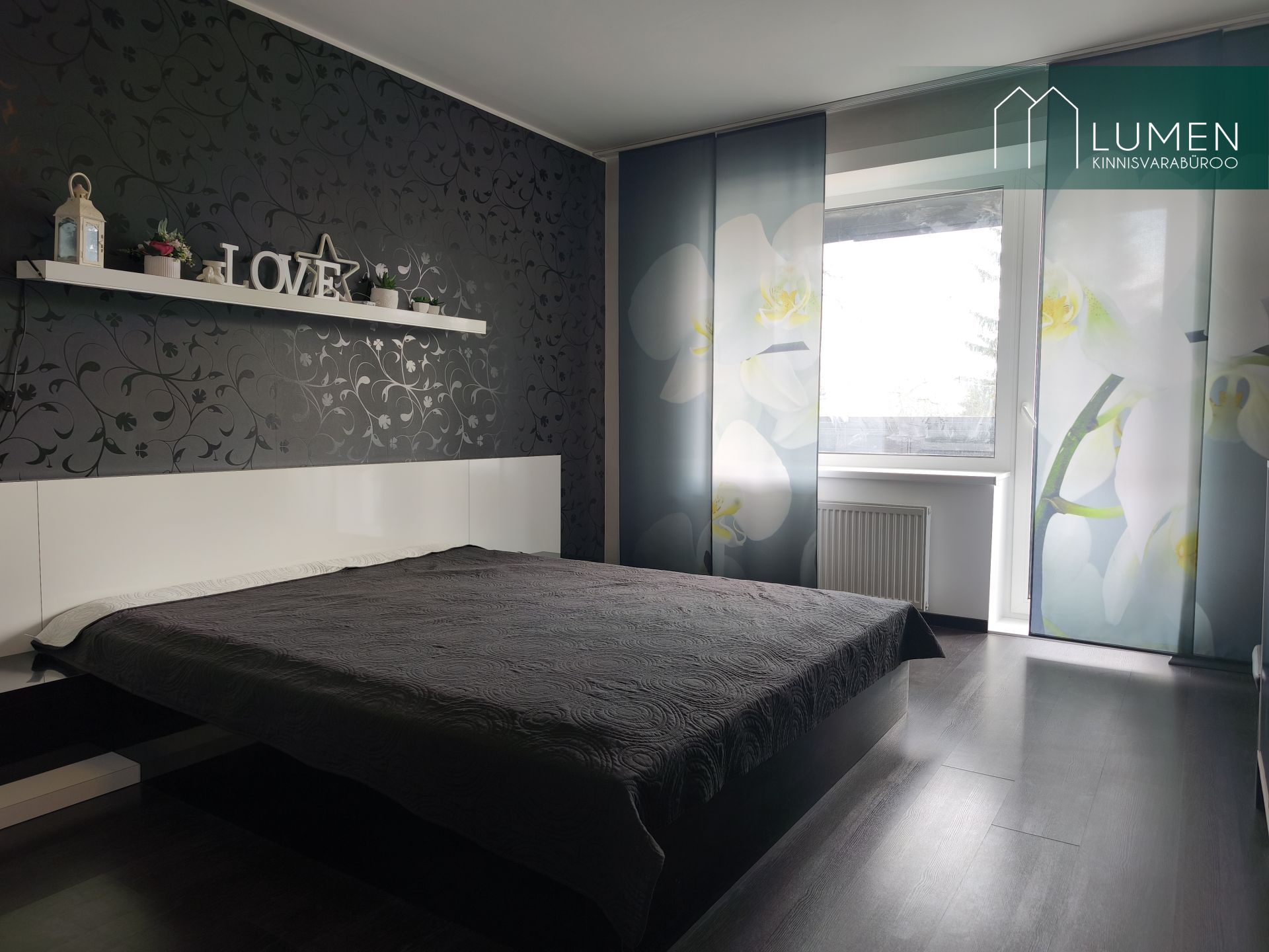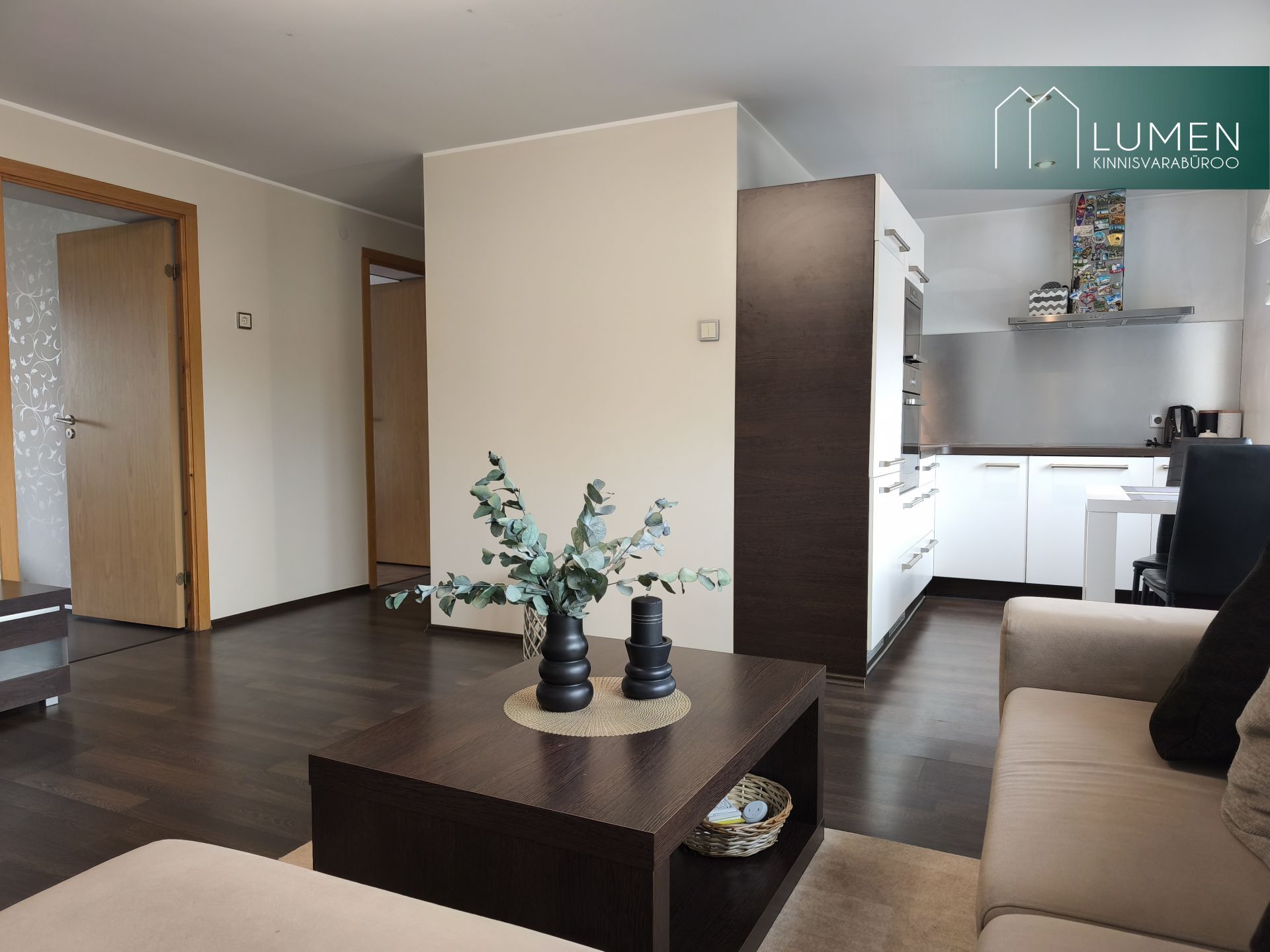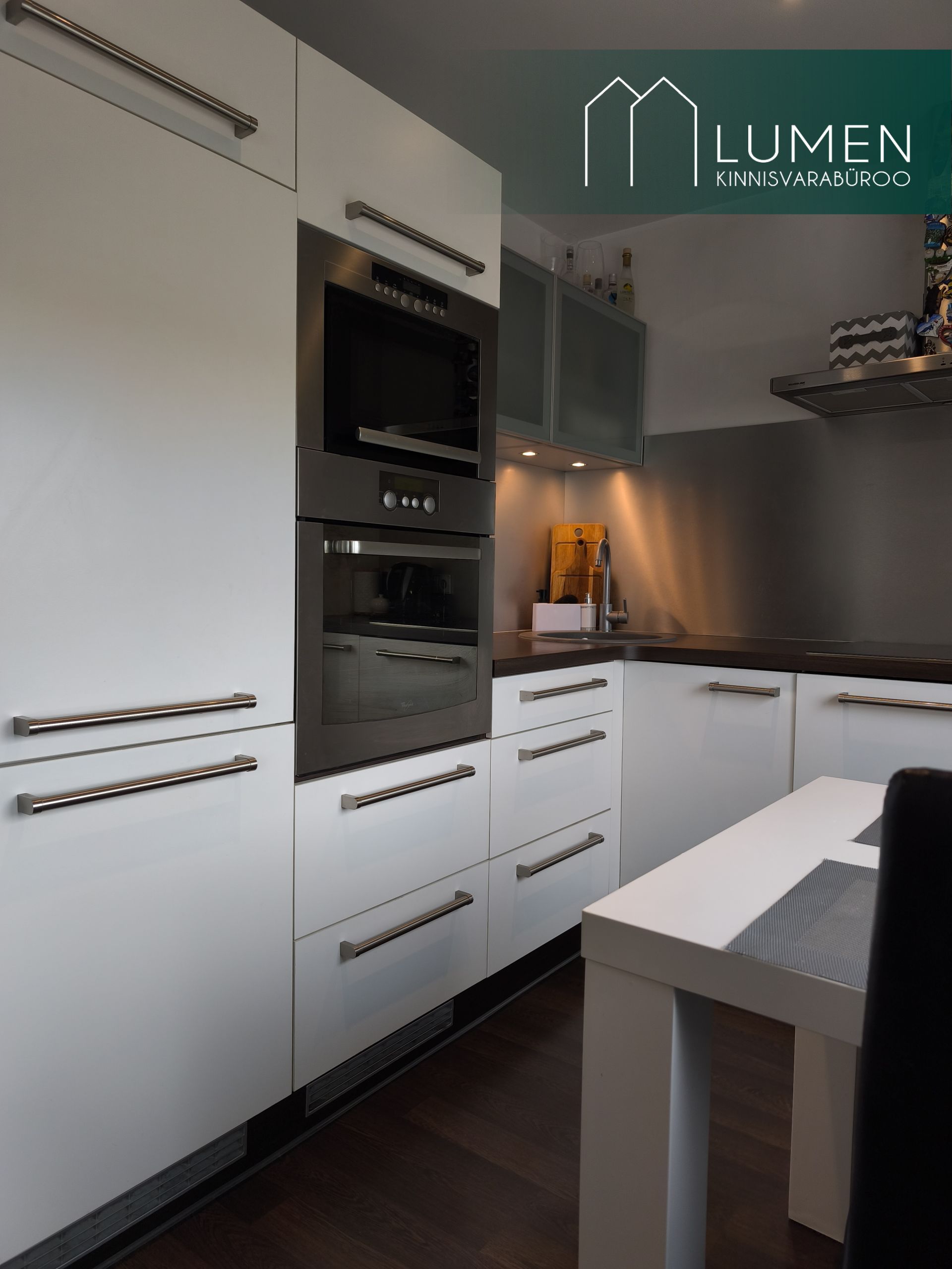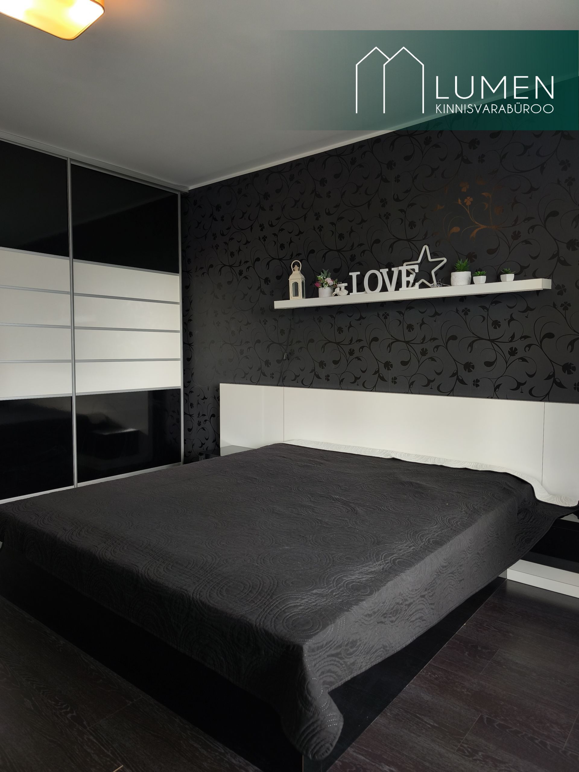 Köök on varustatud kogu vajaliku tehnikaga-pliit, külmkapp, praeahi, mikrolaineahi ja nõudepesumasin. Vannitoas on pesumasin. Korterisse jääb piltidel olev elu- ja magamistoa mööbel. Korteris on soe vesi tsentraalne.
