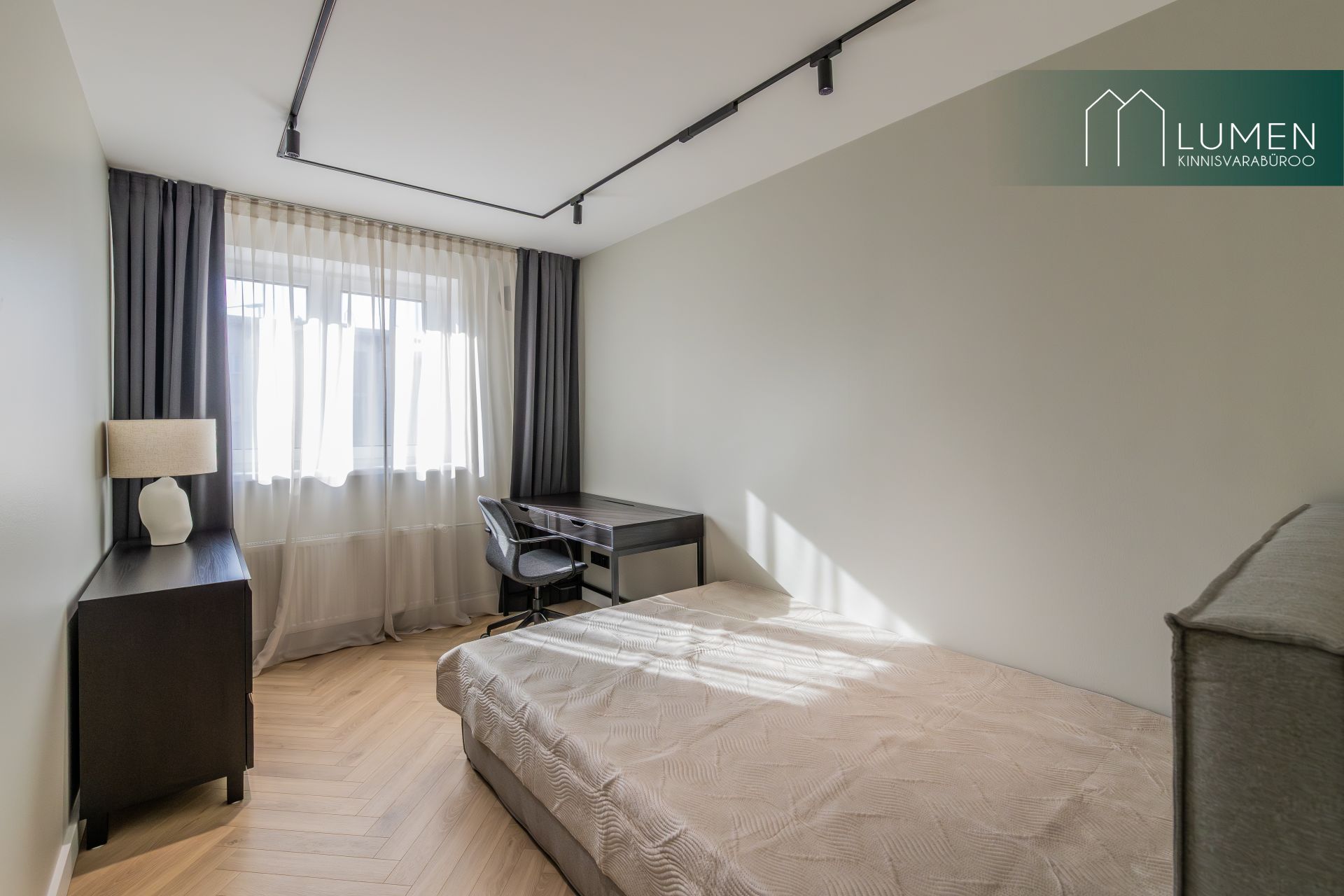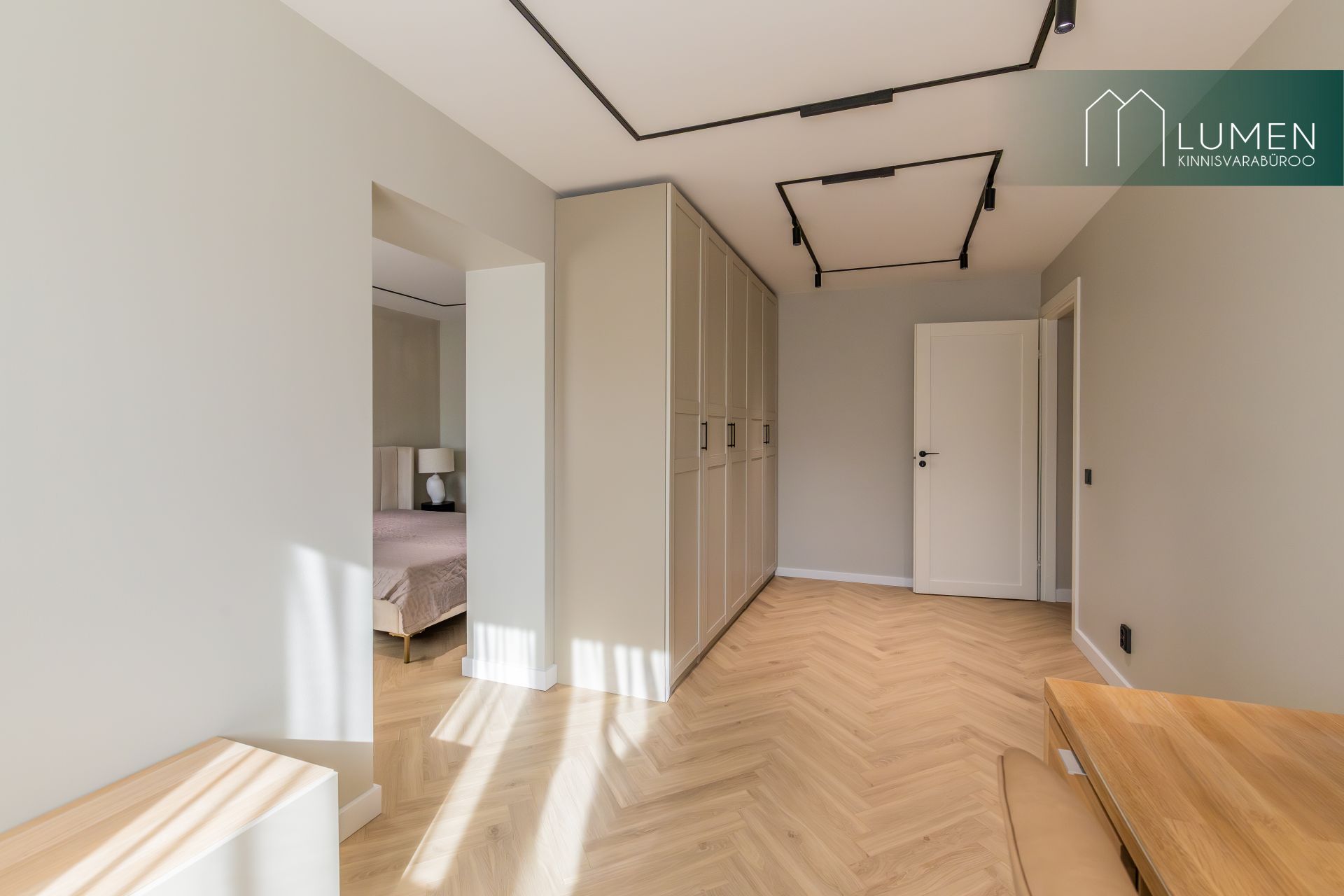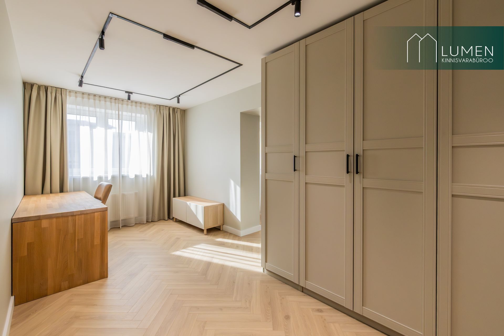 Korteris on kaks hubast magamistubam millest üks on rõduga ning lisaväärtusena eraldi tuba, mida saab kasutada stiilse kodukontori või mahuka garderoobina. Suur esik koos sisseehitatud garderoobiga pakub praktilist lahendust igapäevaseks mugavuseks. WC ja vannituba on viimistletud kaasaegses võtmes, kus kvaliteetsed materjalid ja puhas disain loovad rahuliku keskkonna.
