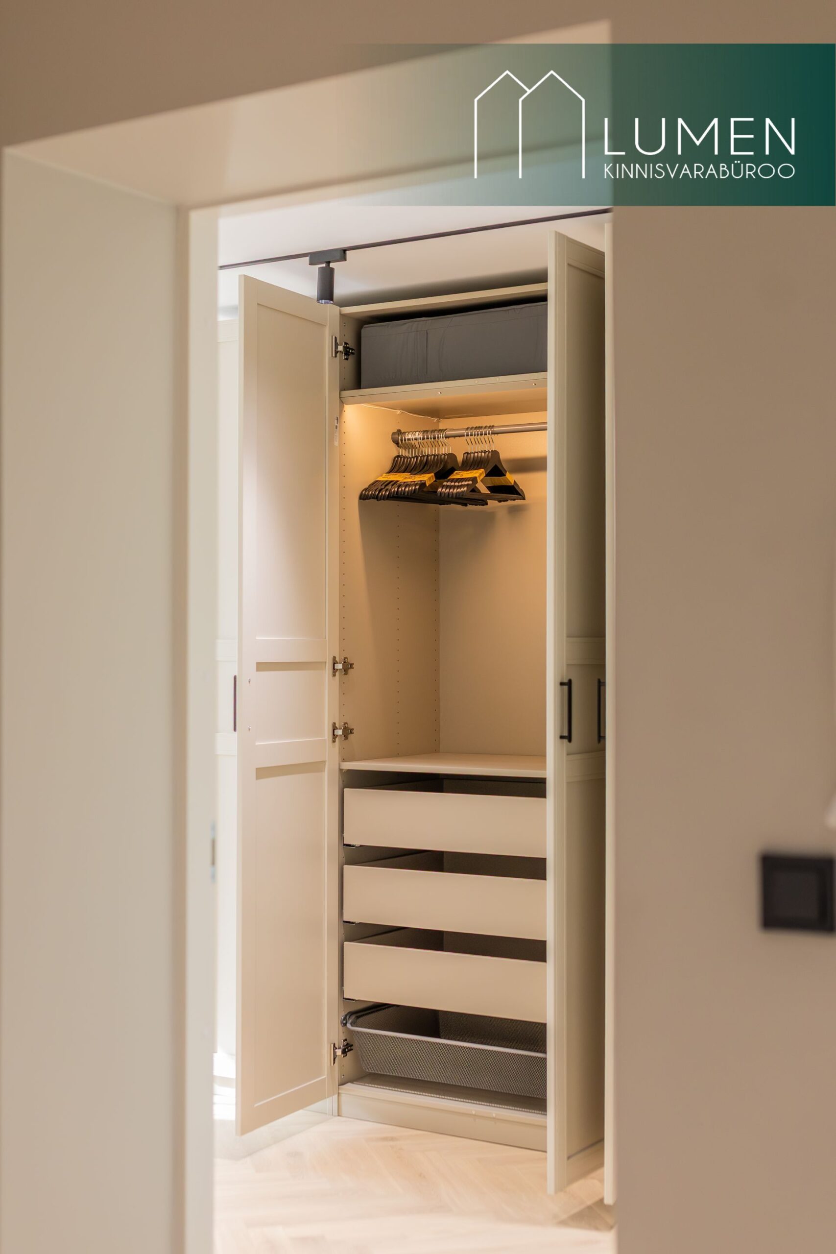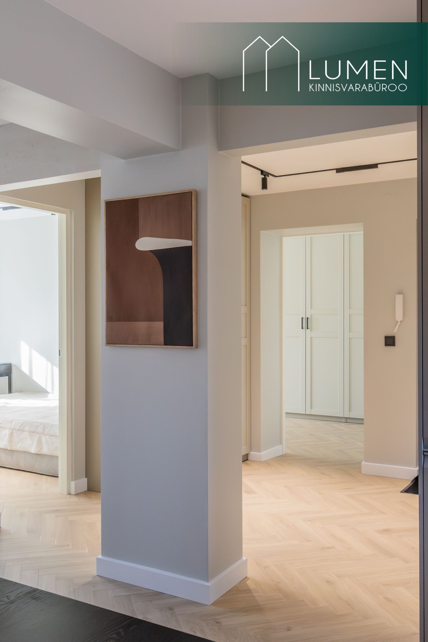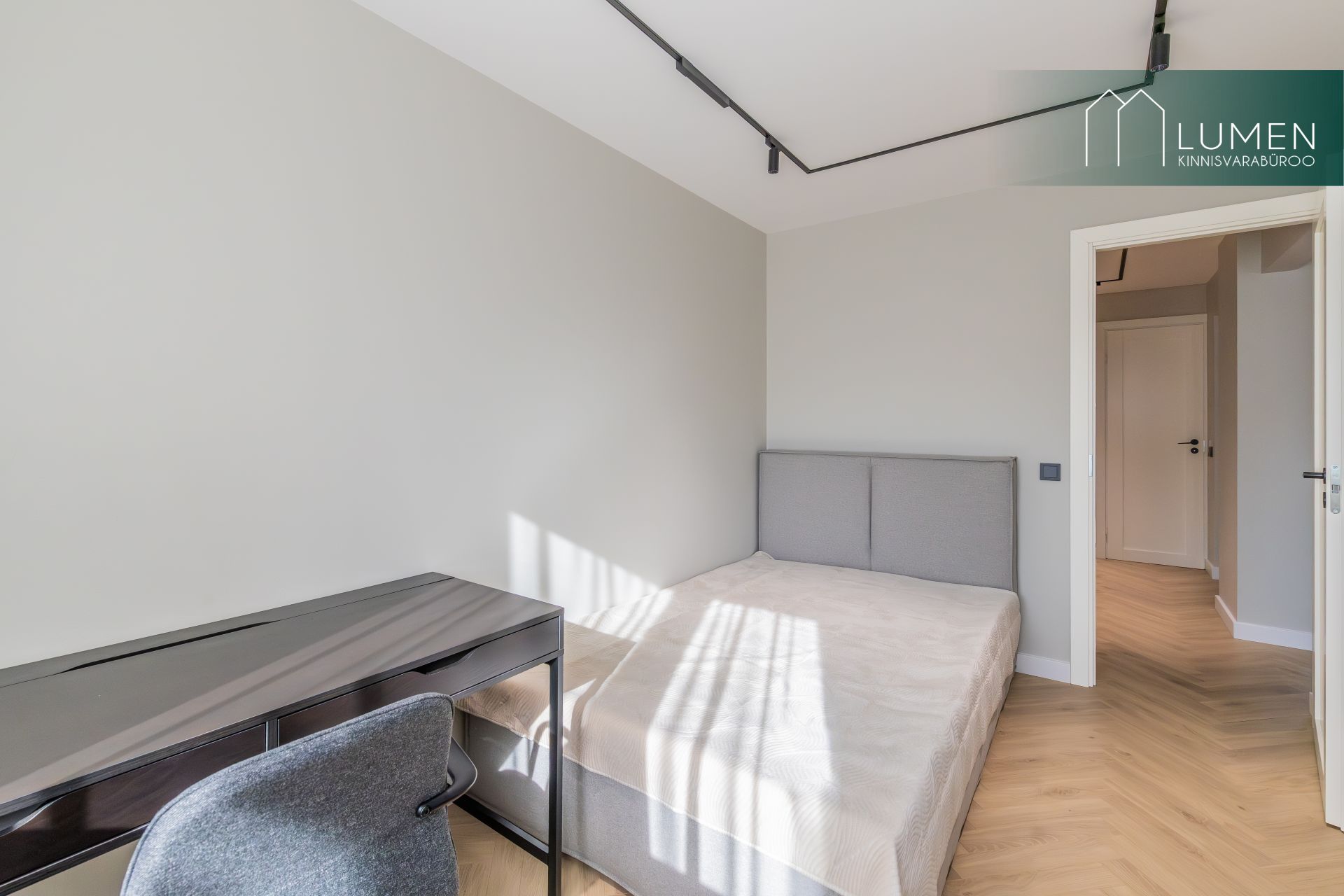 Korteris on kaks hubast magamistubam millest üks on rõduga ning lisaväärtusena eraldi tuba, mida saab kasutada stiilse kodukontori või mahuka garderoobina. Suur esik koos sisseehitatud garderoobiga pakub praktilist lahendust igapäevaseks mugavuseks. WC ja vannituba on viimistletud kaasaegses võtmes, kus kvaliteetsed materjalid ja puhas disain loovad rahuliku keskkonna.