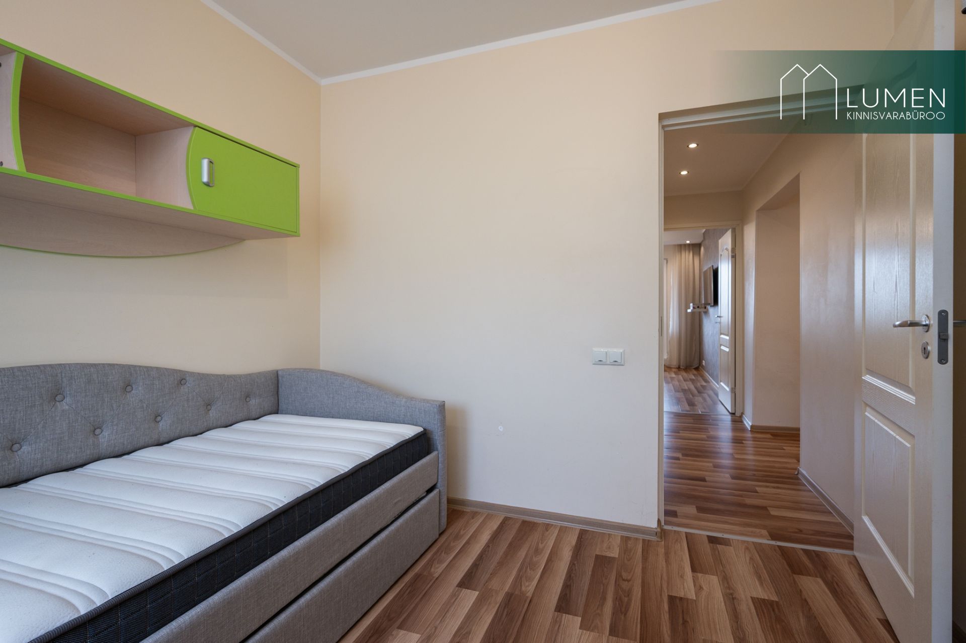 Köögis paigaldatud kvaliteetne köögimööbel koos tehnikaga. WC ja vannituba on eraldi. Korteri juurde kuulub kindel keldriboks.