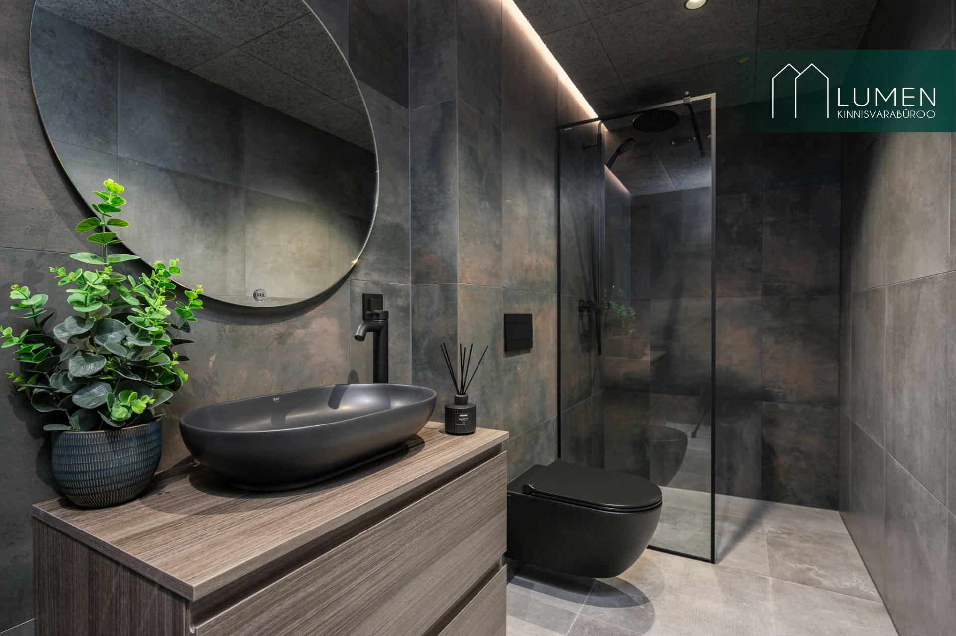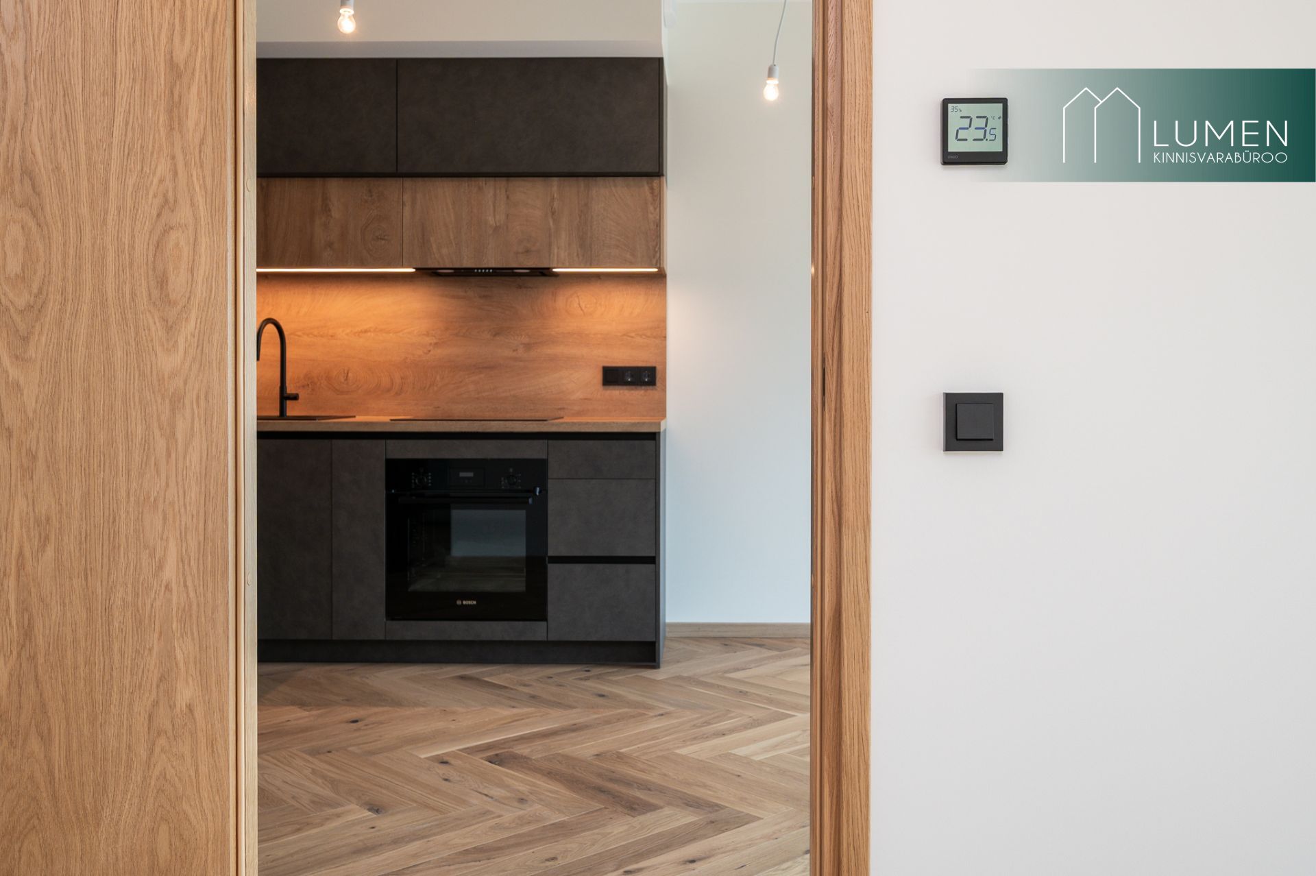 Korteri siseviimistluses on kasutatud vaid kvaliteetseid materjale. Antud korterisse on tellitud eksklusiivne Lux Premium Black pakett, mis loob koju hubase ja sooja atmosfääri. Just need tumedamad toonid interjööris on need, mis annavad kodule sügavuse ja kaasaegse ilme.