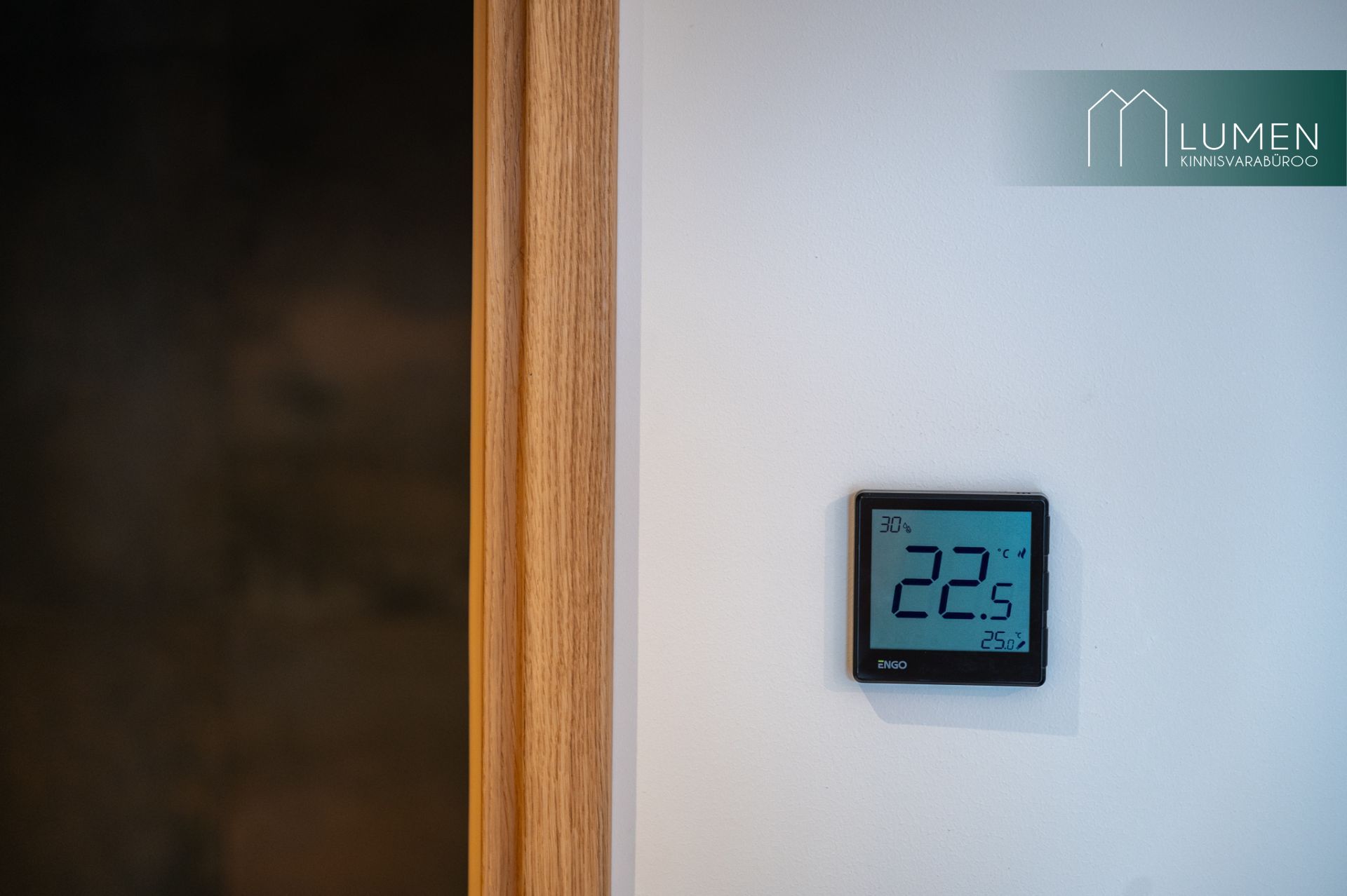 Korterit köetakse tsentraalse kaugküttega (vesipõrandküte) ja tubade temperatuuri on võimalik eraldi reguleerida. Termostaadid on igas ruumis ning neid on võimalik telefoni teel läbi äpi juhtida.