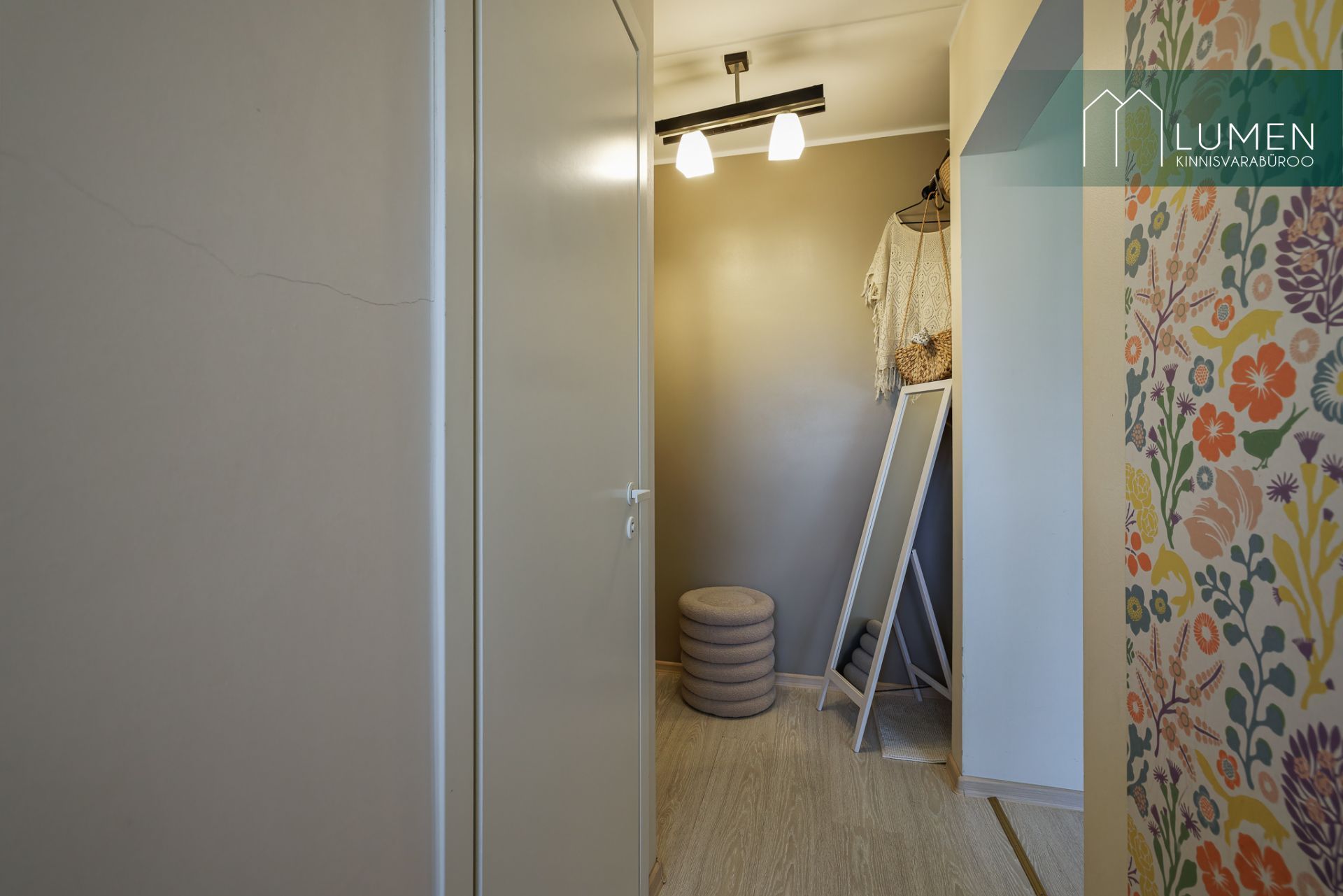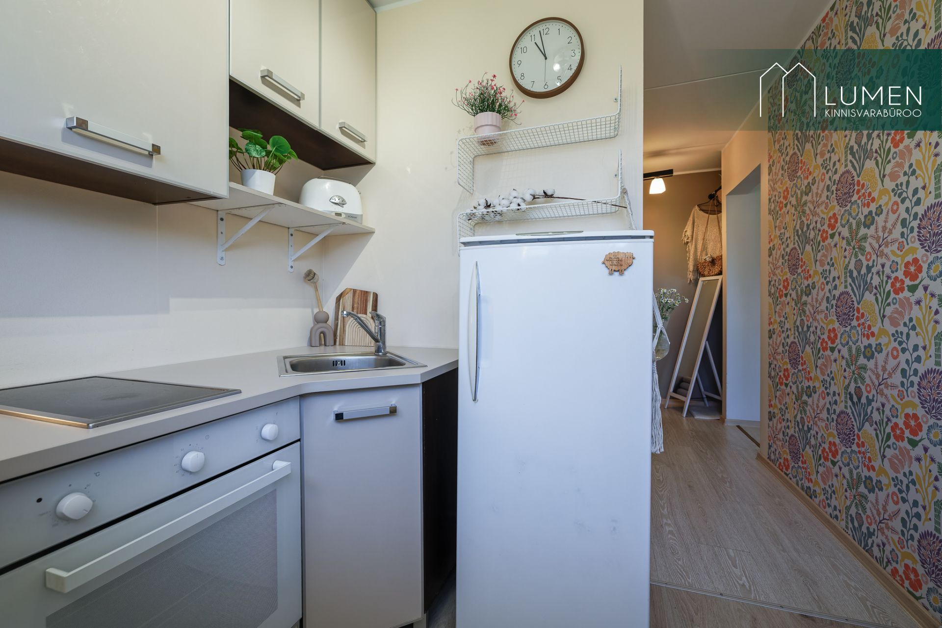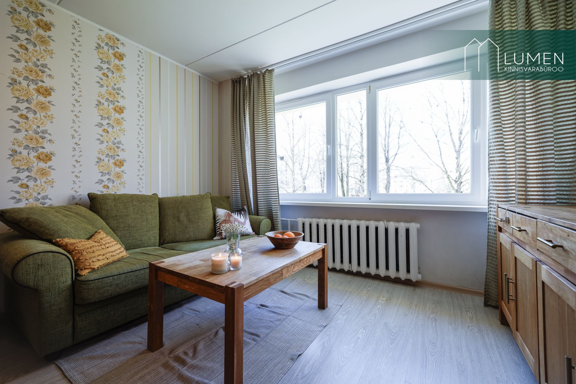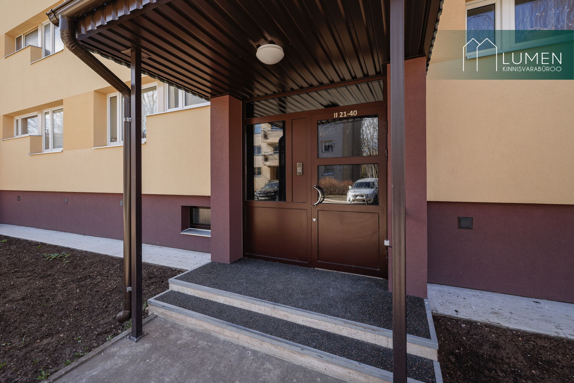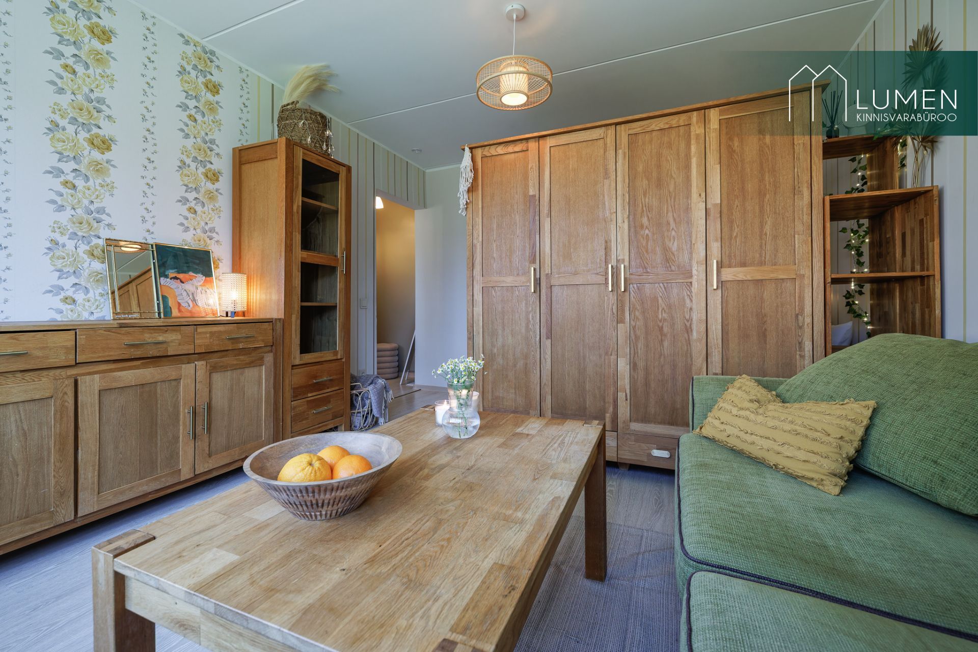 Üürile anda hubane ja valgusküllane 1-toaline korter (29,7 m²) esimesel korrusel. Korter on sisustatud heas maitses ning loob mõnusa koduse tunde: avar elutuba/magamisnurk, eraldatud köögiala ning praktilised panipaiga lahendused. Suured aknad toovad tuppa palju loomulikku valgust, avanevad maja taha ehk lääne suunal, ning heledad toonid koos puitdetailidega annavad interjöörile sooja ja rahuliku ilme. Köögis on olemas igapäevaseks toimetamiseks vajalik ning mõnus pisike sööginurk. Hoone on värskelt renoveeritud, soojustatud, ja saanud uue ilme.