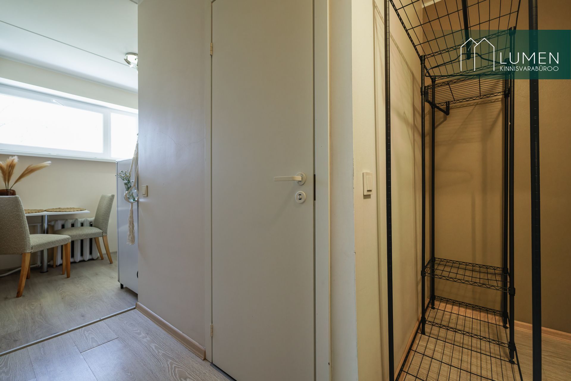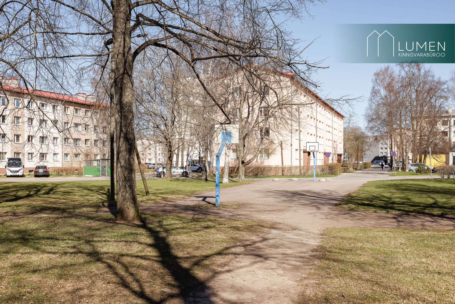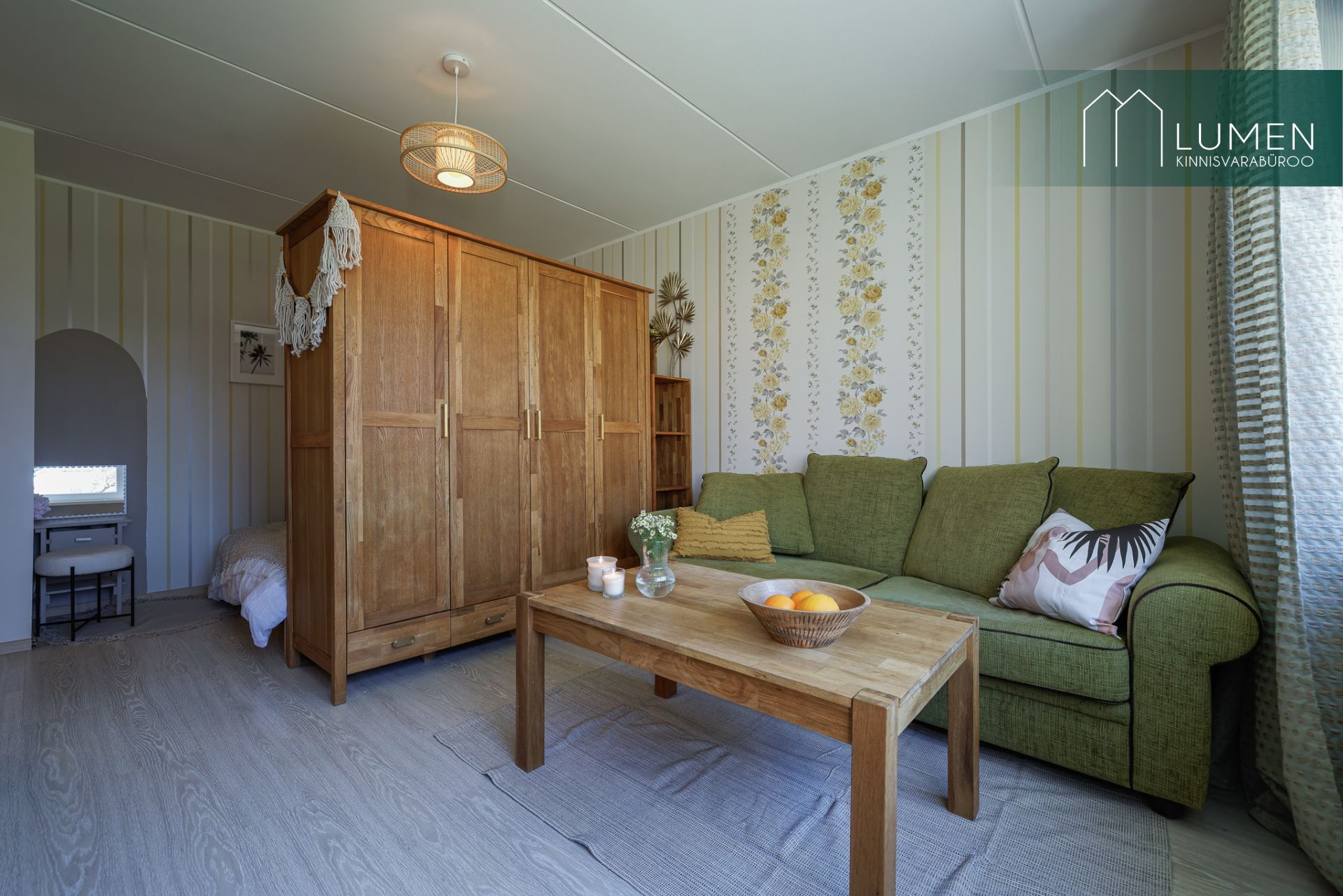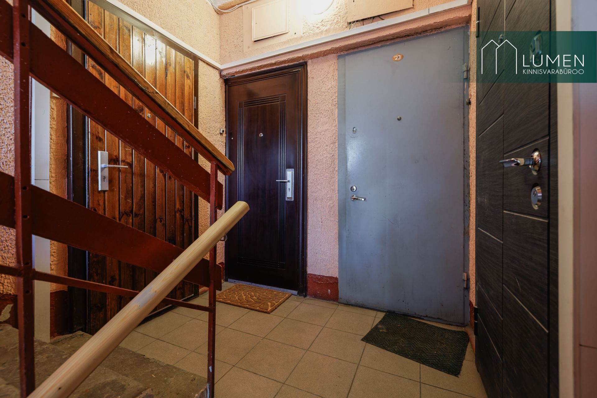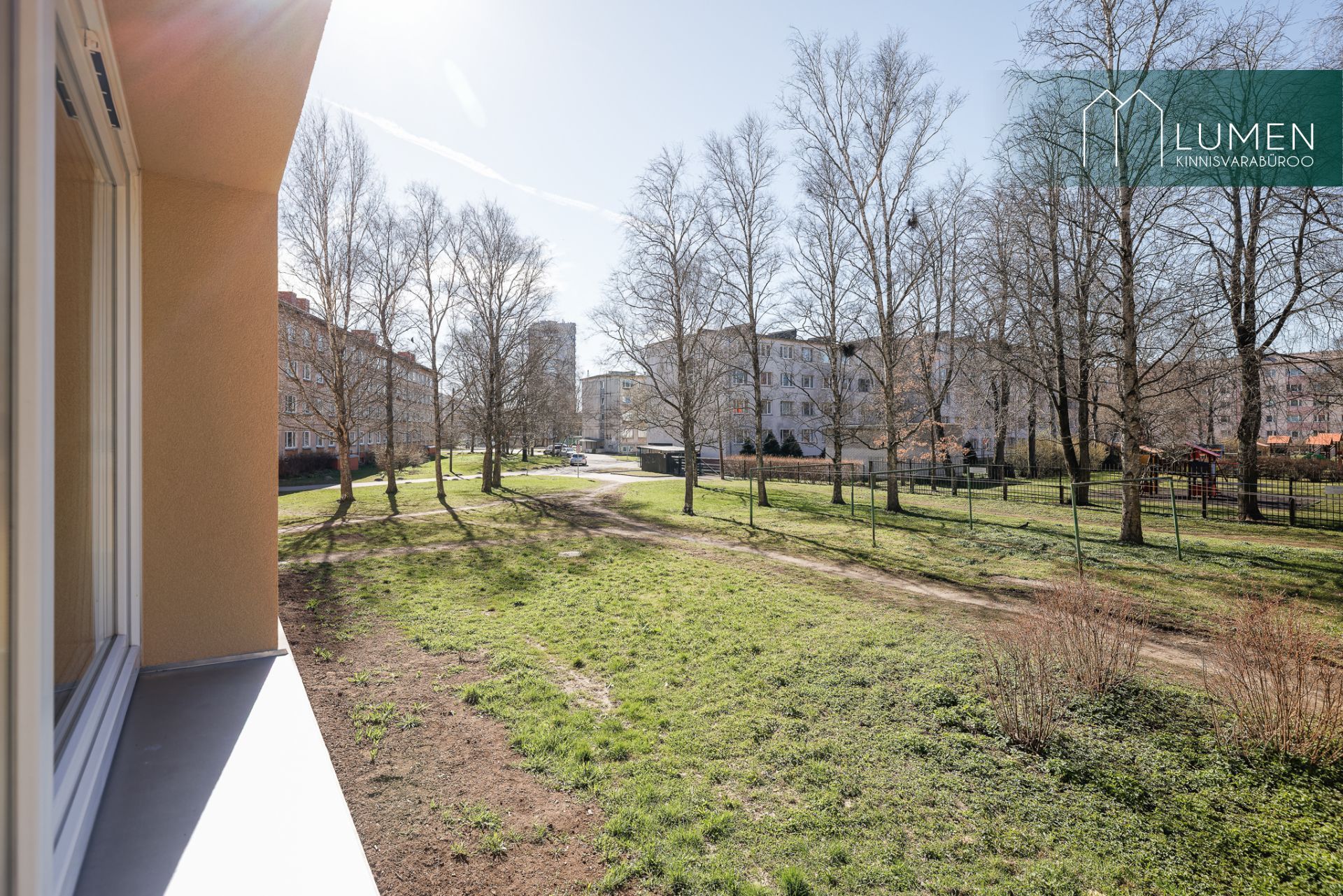 Üürile anda hubane ja valgusküllane 1-toaline korter (29,7 m²) esimesel korrusel. Korter on sisustatud heas maitses ning loob mõnusa koduse tunde: avar elutuba/magamisnurk, eraldatud köögiala ning praktilised panipaiga lahendused. Suured aknad toovad tuppa palju loomulikku valgust, avanevad maja taha ehk lääne suunal, ning heledad toonid koos puitdetailidega annavad interjöörile sooja ja rahuliku ilme. Köögis on olemas igapäevaseks toimetamiseks vajalik ning mõnus pisike sööginurk. Hoone on värskelt renoveeritud, soojustatud, ja saanud uue ilme.