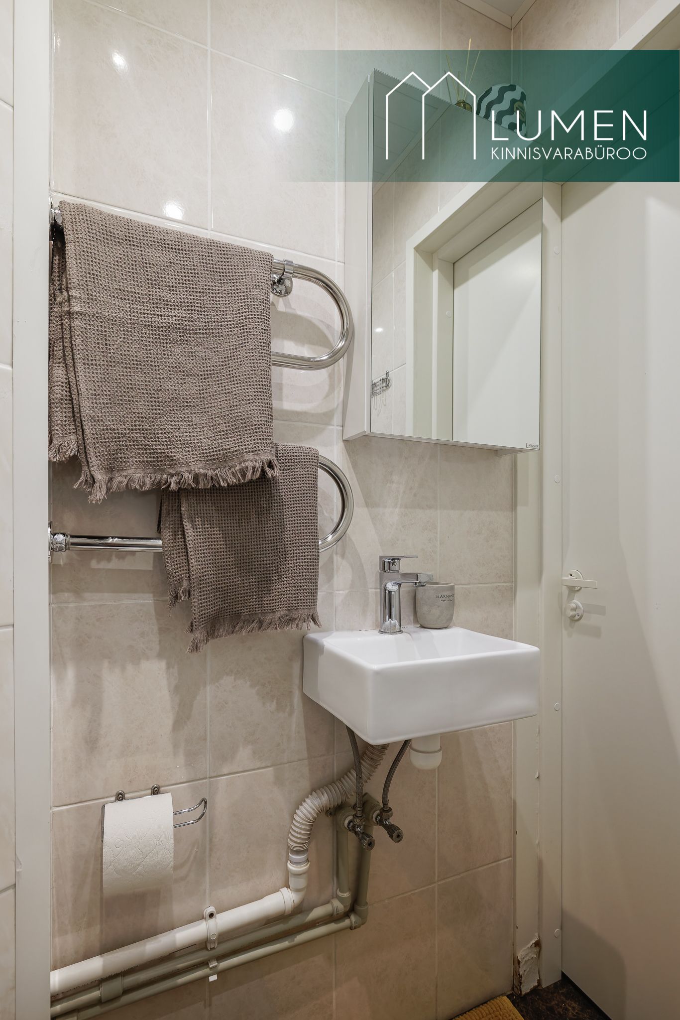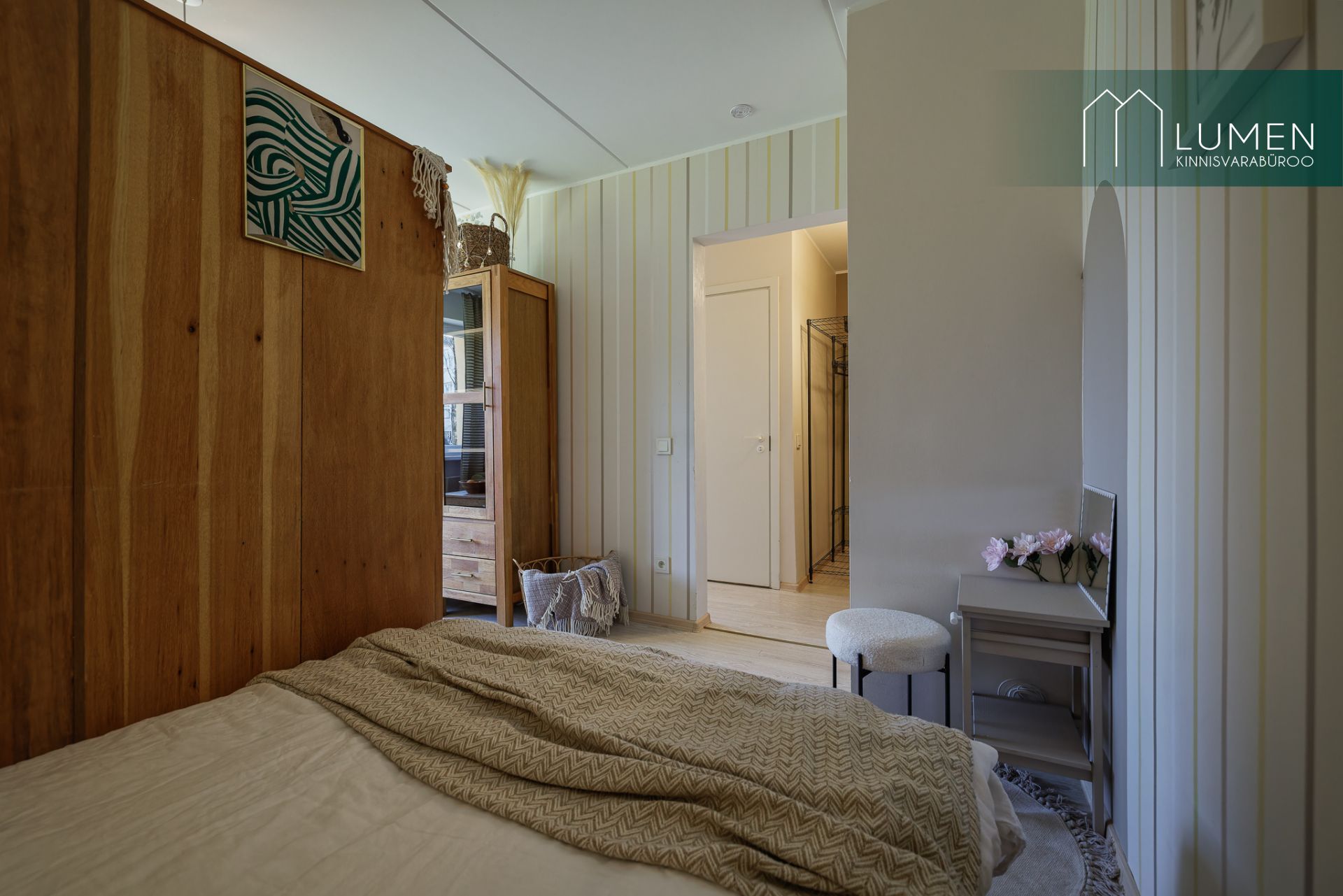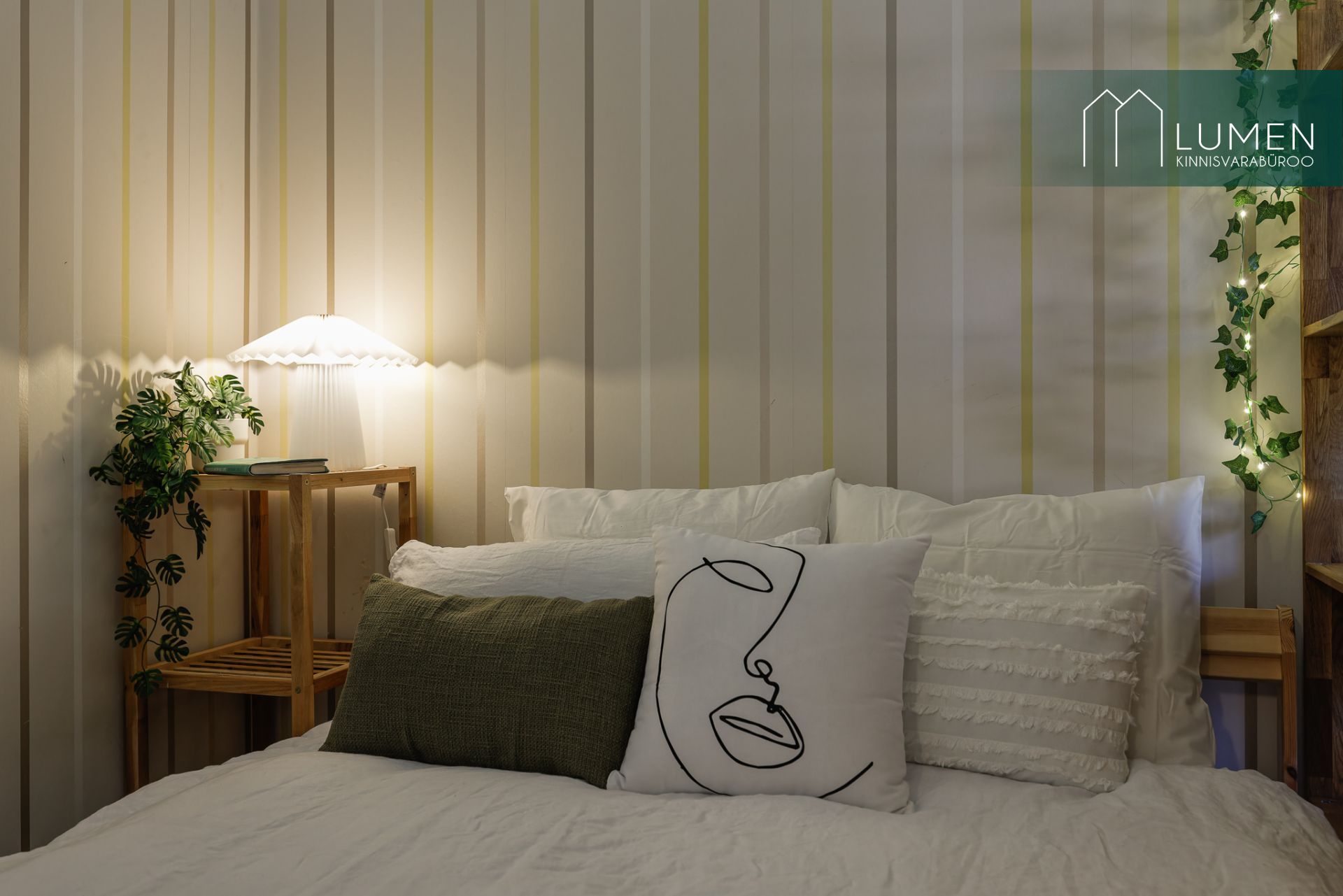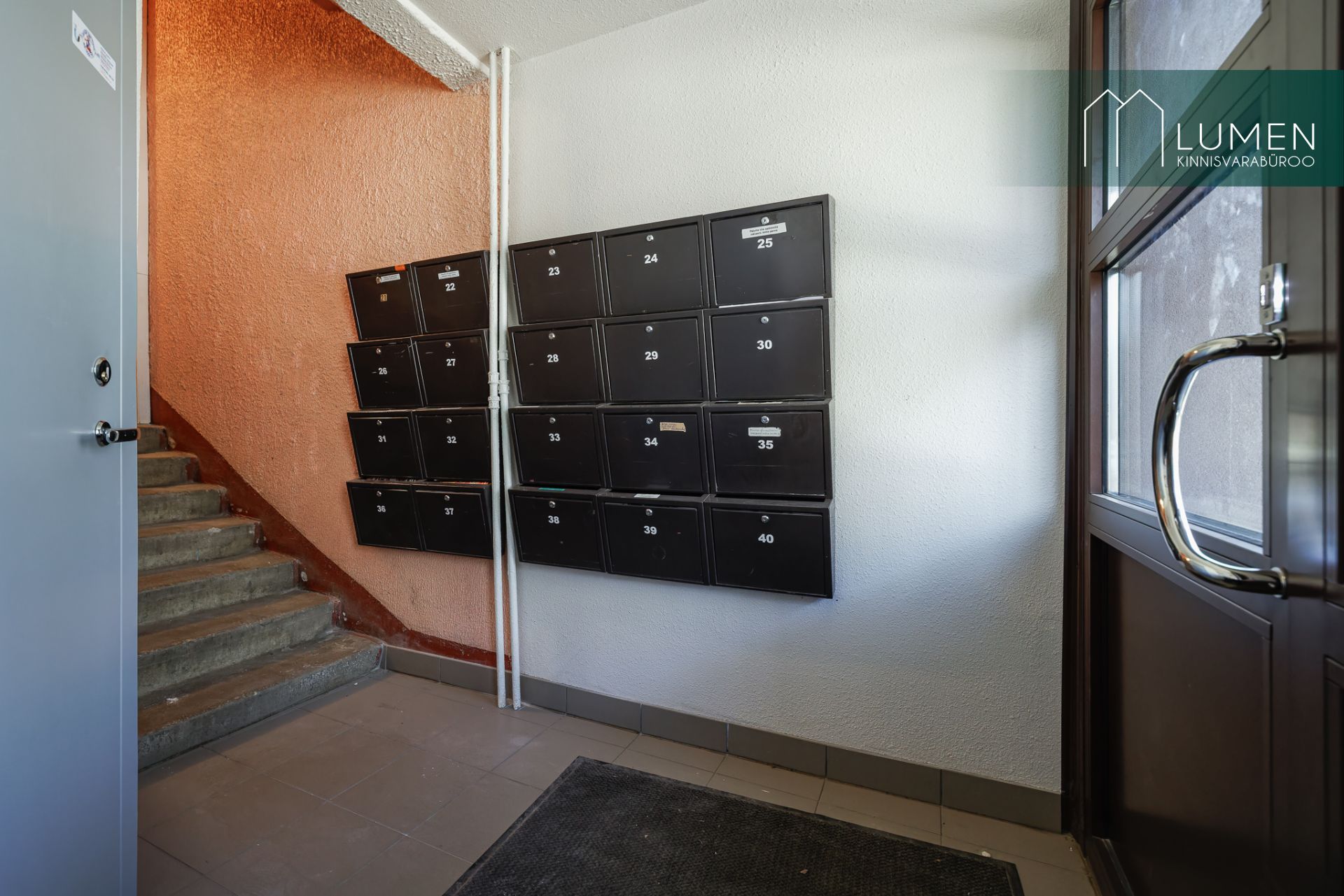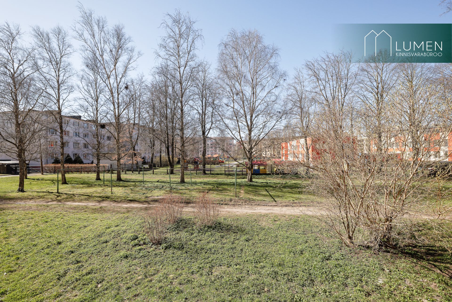 Üürile anda hubane ja valgusküllane 1-toaline korter (29,7 m²) esimesel korrusel. Korter on sisustatud heas maitses ning loob mõnusa koduse tunde: avar elutuba/magamisnurk, eraldatud köögiala ning praktilised panipaiga lahendused. Suured aknad toovad tuppa palju loomulikku valgust, avanevad maja taha ehk lääne suunal, ning heledad toonid koos puitdetailidega annavad interjöörile sooja ja rahuliku ilme. Köögis on olemas igapäevaseks toimetamiseks vajalik ning mõnus pisike sööginurk. Hoone on värskelt renoveeritud, soojustatud, ja saanud uue ilme.