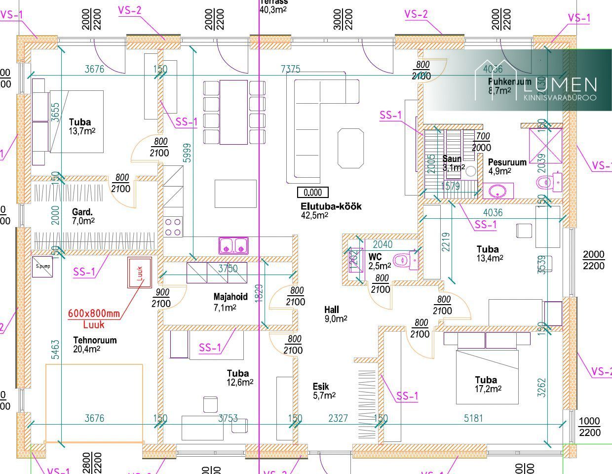 Avar köök-elutuba, neli magamistuba, garderoob, eraldi majapidamisruum, suur panipaik, saun, privaatne hoov ja 40,3 m² terrass loovad kodu, kus on mugav elada igal aastaajal.