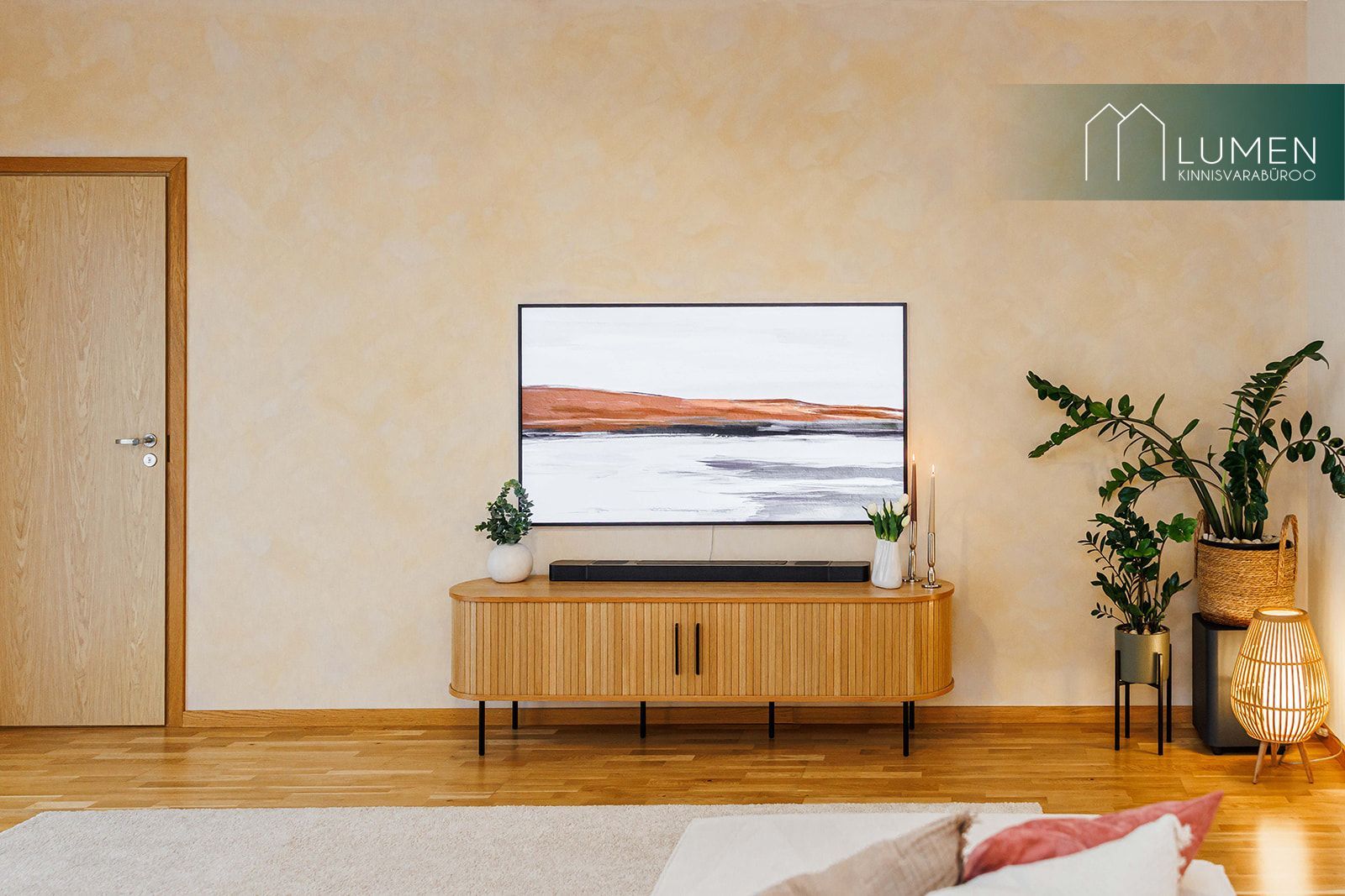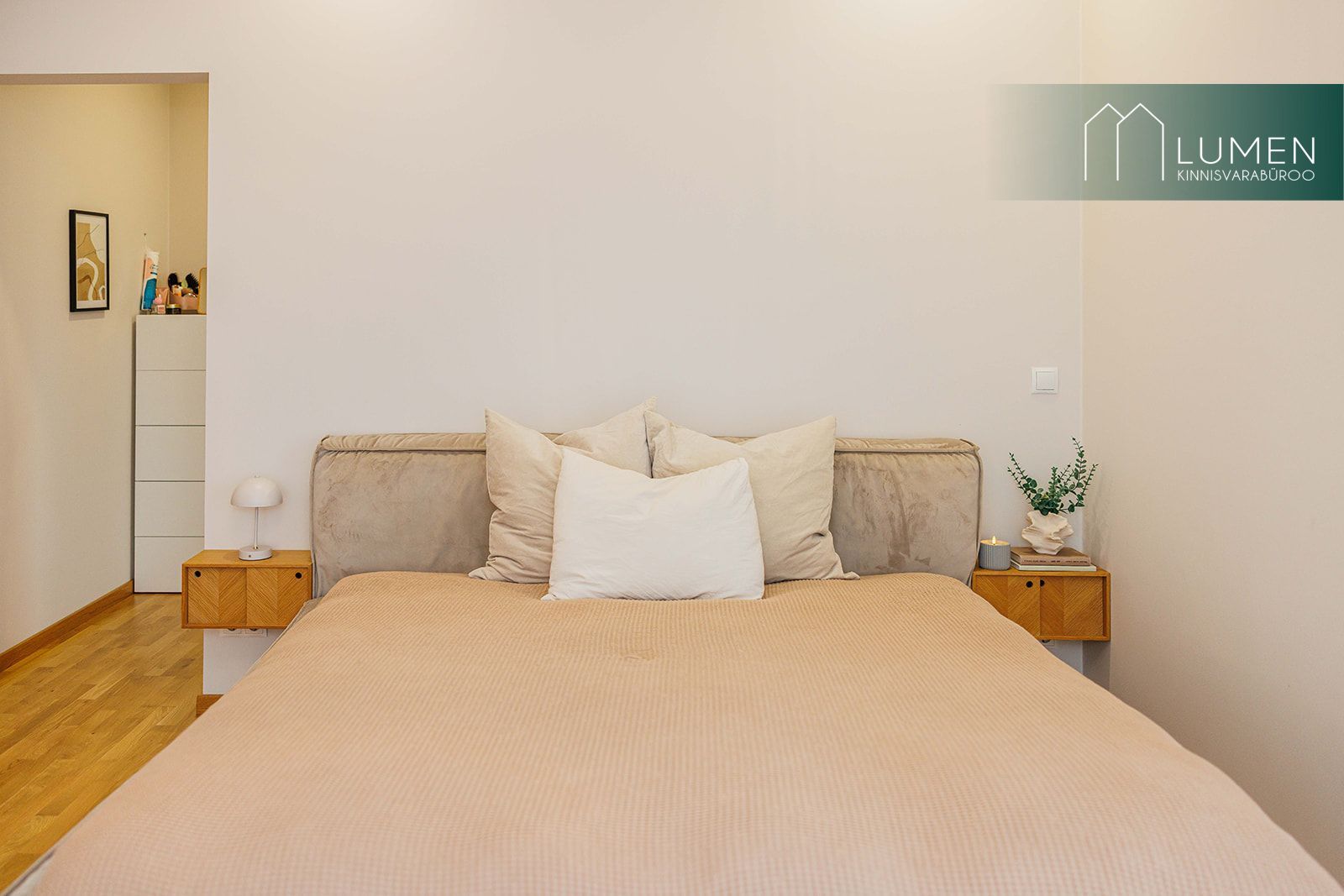 Tubade põrandatel on naturaalne parkett ning seinad ja laed on värvitud. Elutoa üks sein on kujundatud efektseinana lubivärviga, mis lisab interjöörile isikupära ja hubasust.