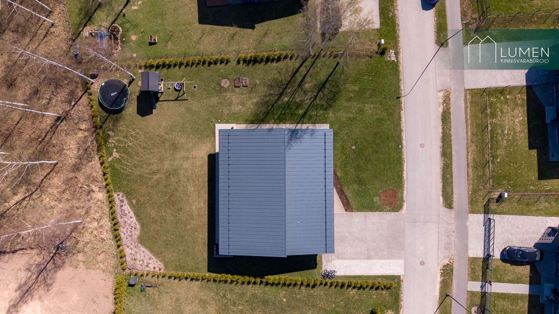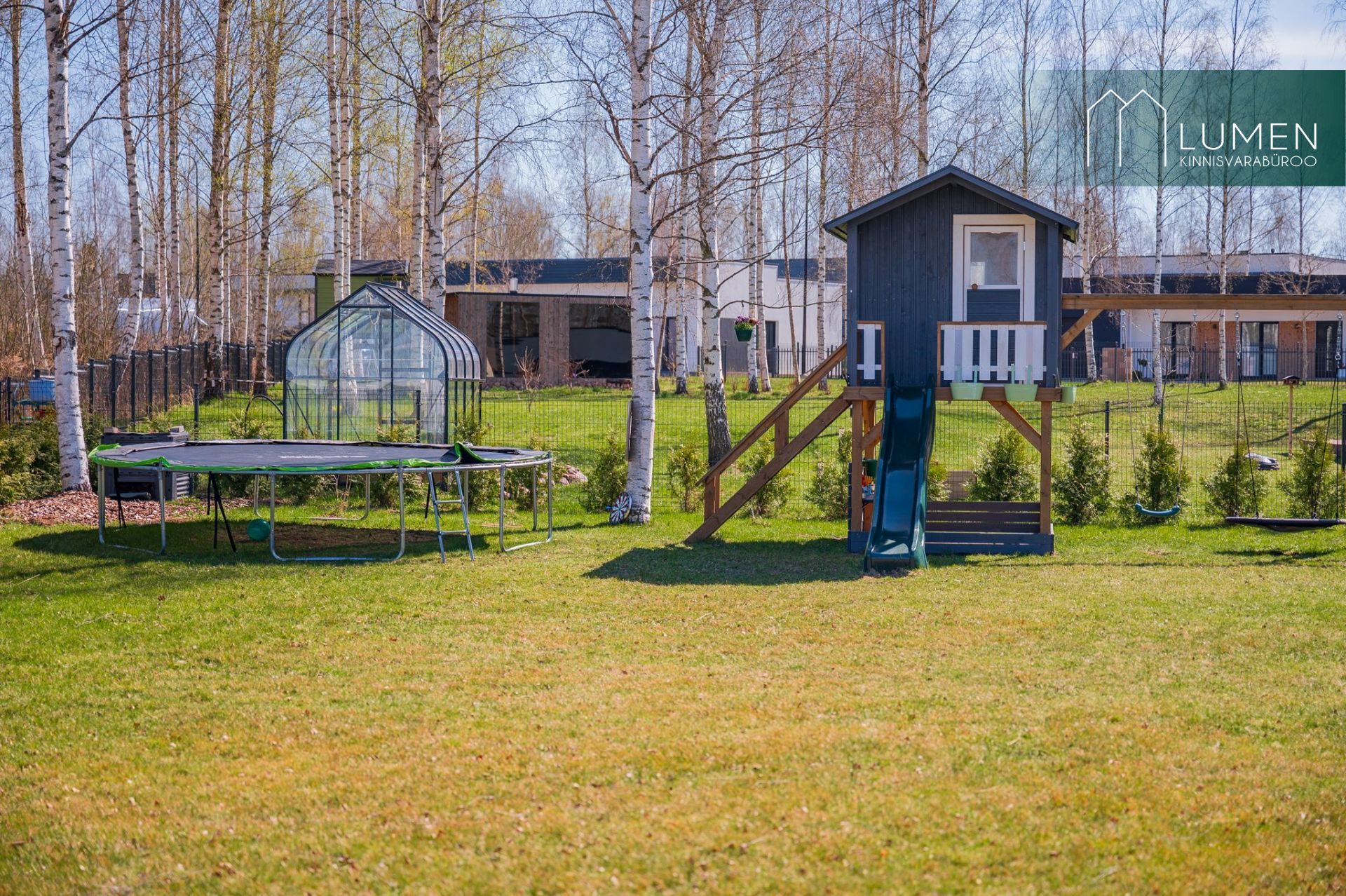 Krunt on juba kõrghaljastatud ning hoovis kasvavad kased. Kolmest küljest piirab kinnistut elupuuhekk, mis loob privaatsust ja mõnusa koduse tunde.