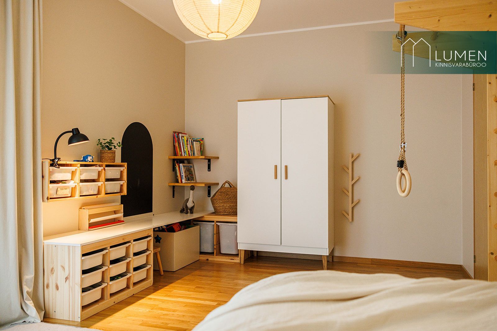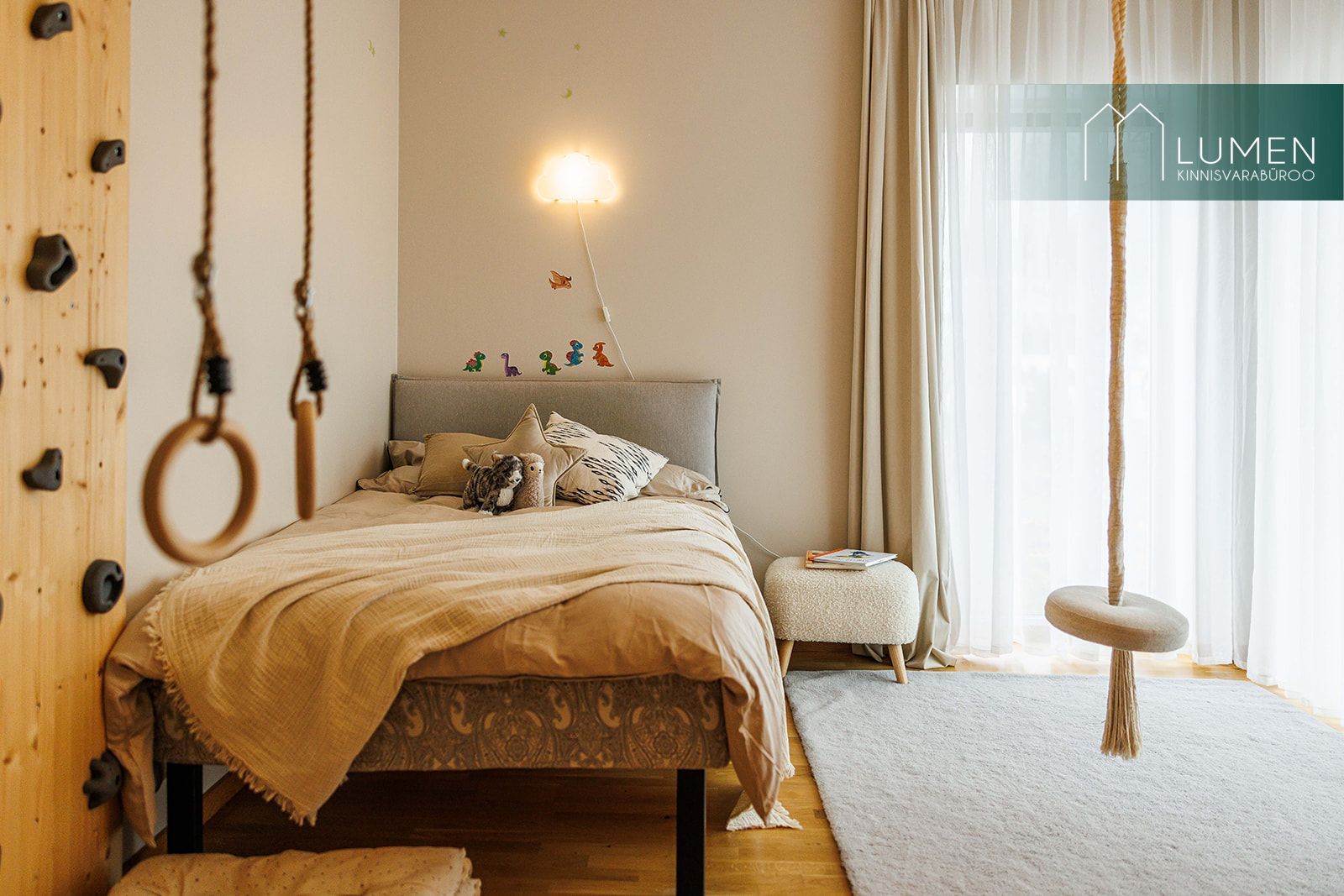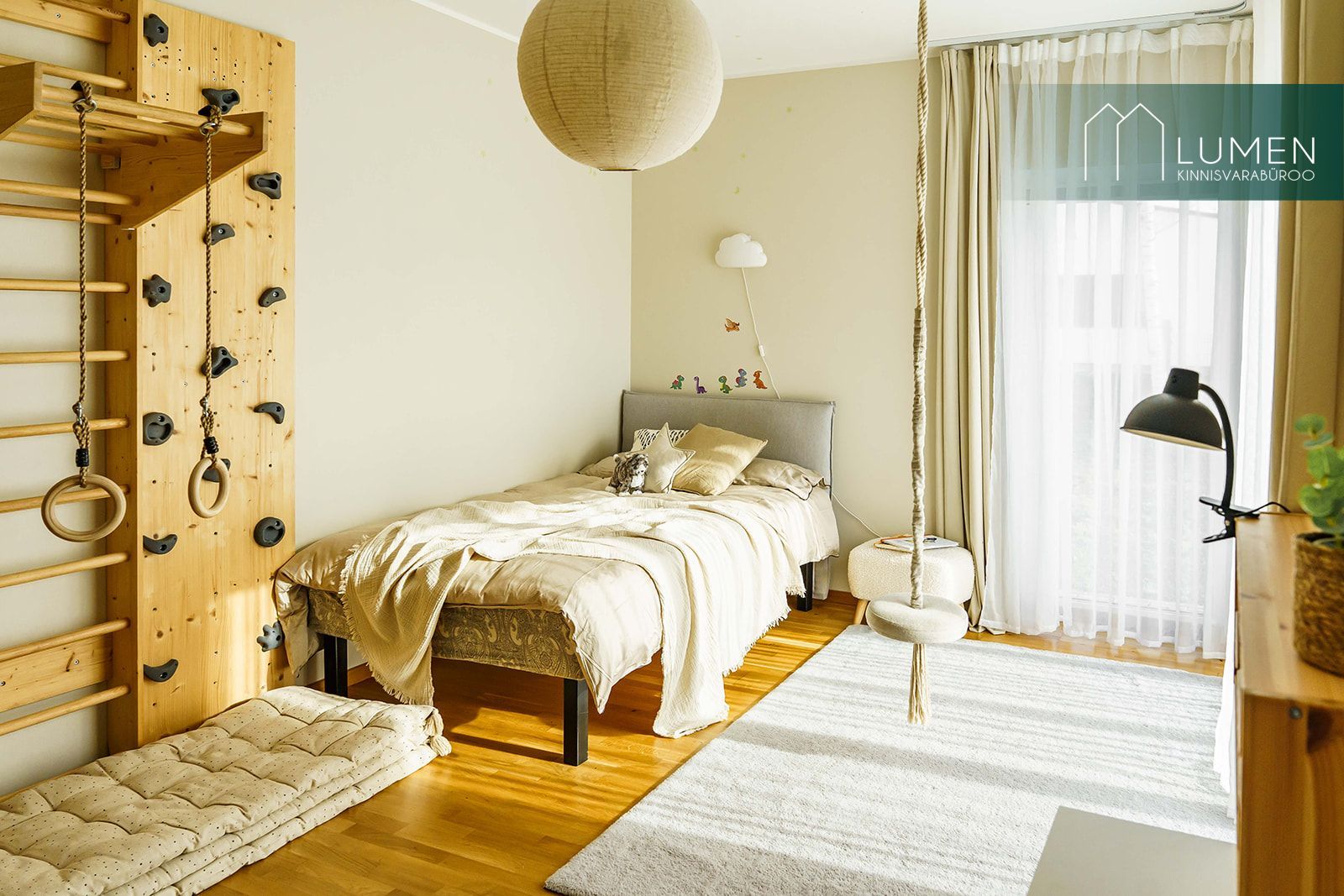 Ühte lastetuppa on ehitatud ronimis- ja varbsein, mis lisab ruumile mängulisust ja teeb sellest lapse jaoks tõeliselt ägeda toa.
