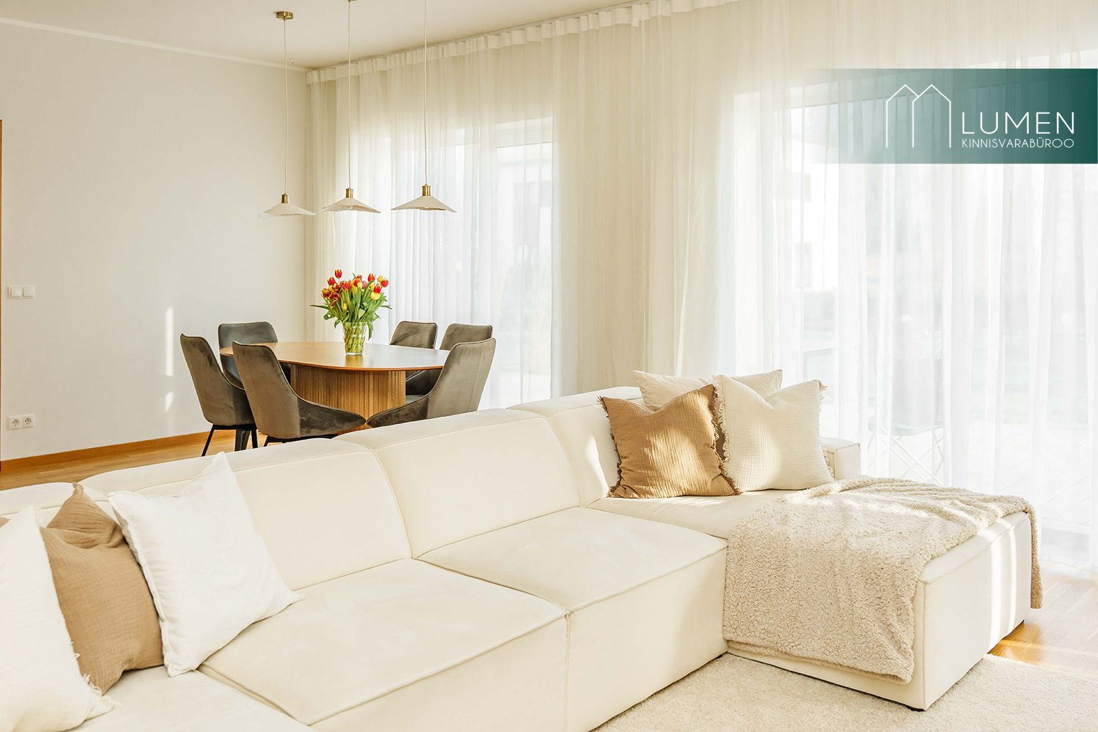 Maja siseviimistlus on hele, kaasaegne ja ajatu.